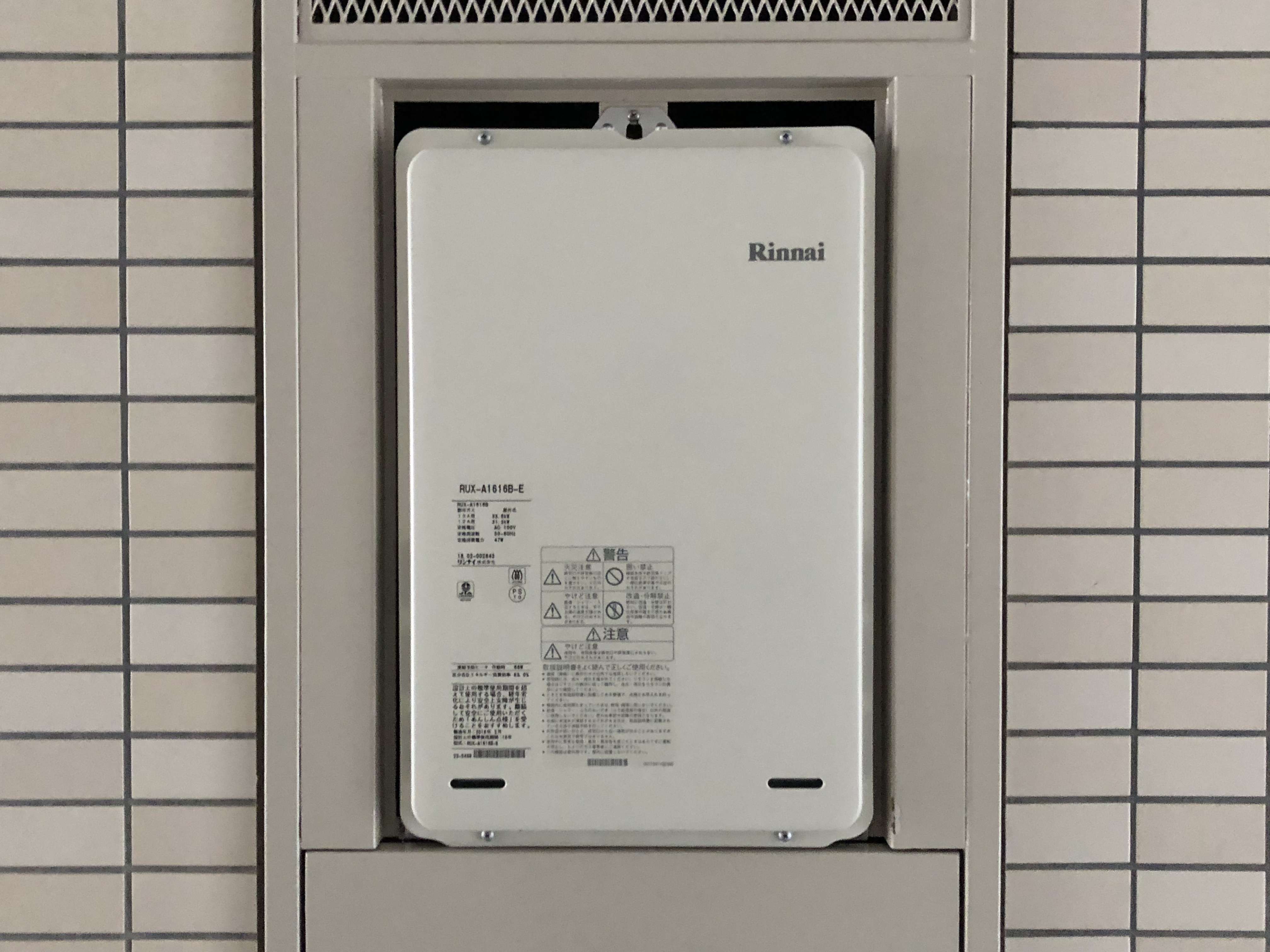 本日はマンションの後方排気型 ガス給湯器の交換工事に伺いました。