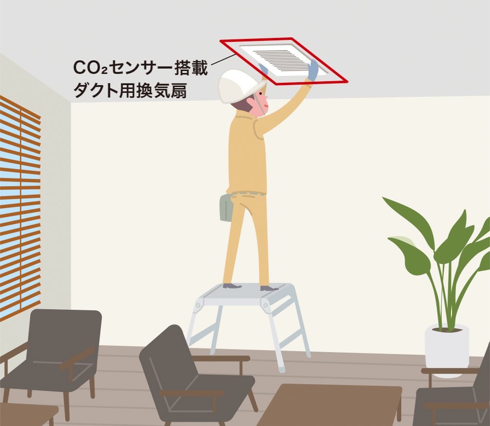 換気扇とCO2センサーが一体なので、設置工事は一度で素早くできます。