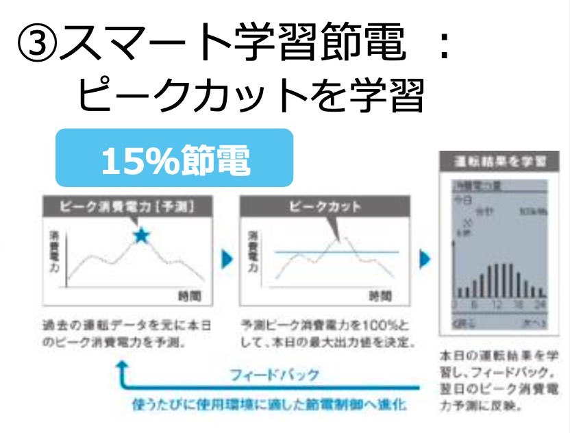 負荷が低い時も機器が学習しながら自動で省エネ運転します。環境にも優しいですね。