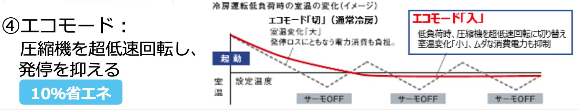 圧縮機を「止めない」スムーズな制御で低負荷時の省エネと快適性を両立。