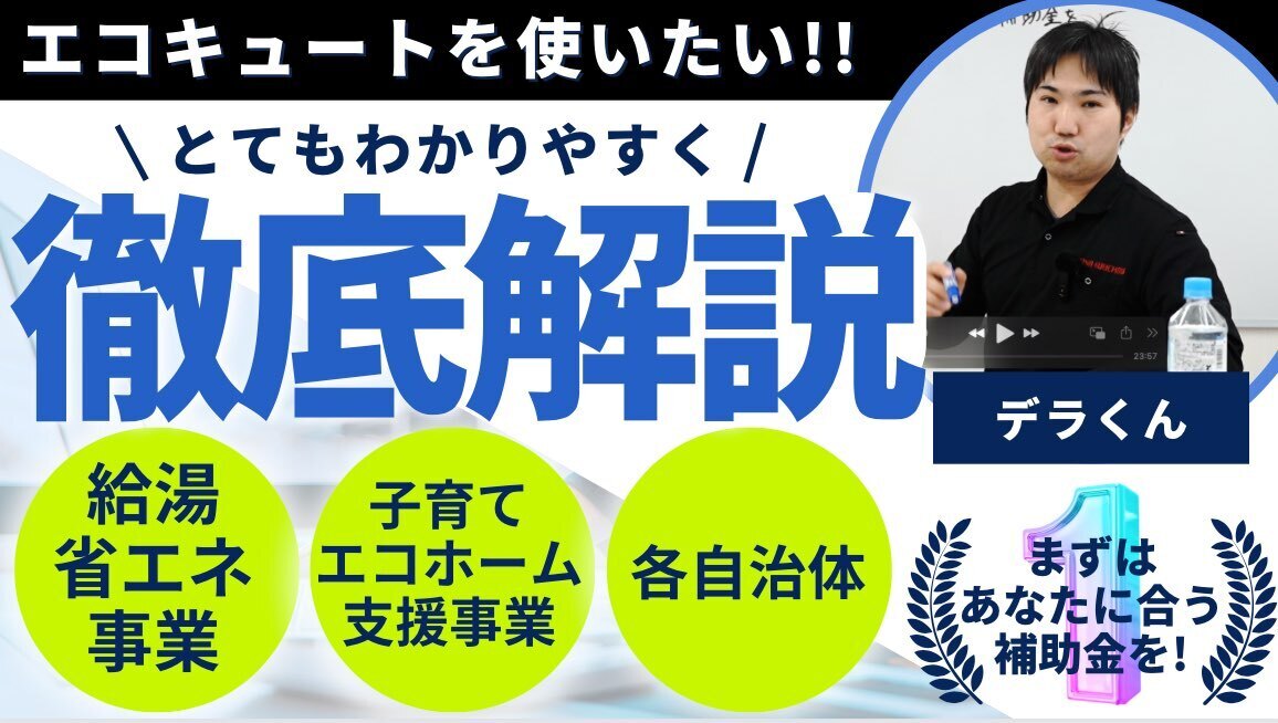 今回は、「給湯省エネ事業」「子育てエコホーム支援事業」「各自治体」のエコキュート補助金の違いについて3回に分けて詳しく解説します。