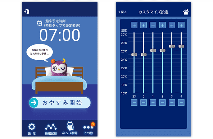 就寝から起床までのエアコンの温度を、時間ごとに細かく設定できます。