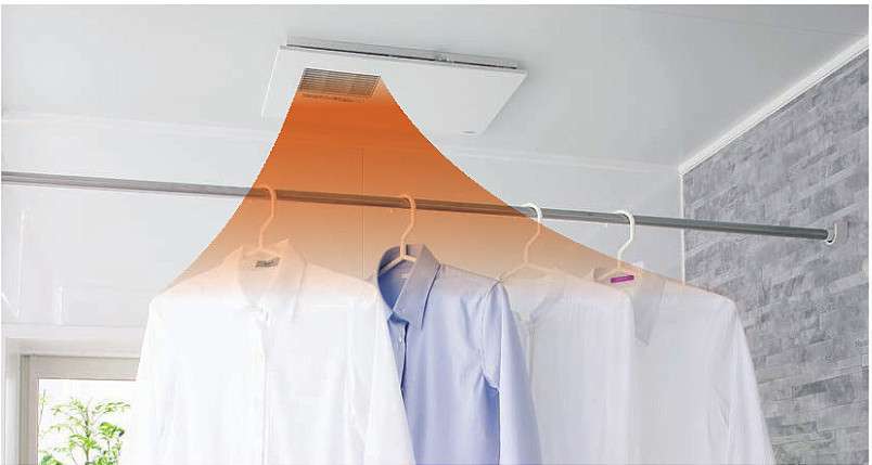 標準的な浴室乾燥機では、一般的に「換気」「暖房」「乾燥」「涼風」といった4つの便利な機能が備わっていますが、中でも注目したいのは「乾燥」機能です。