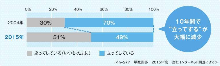 そんなこともあってか、この10年で、男性の用を足す姿勢に変化が表れています。