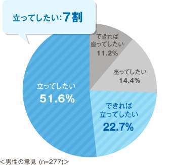 調べてみると、座って用を足す人の87%が、汚れることを理由にしています。