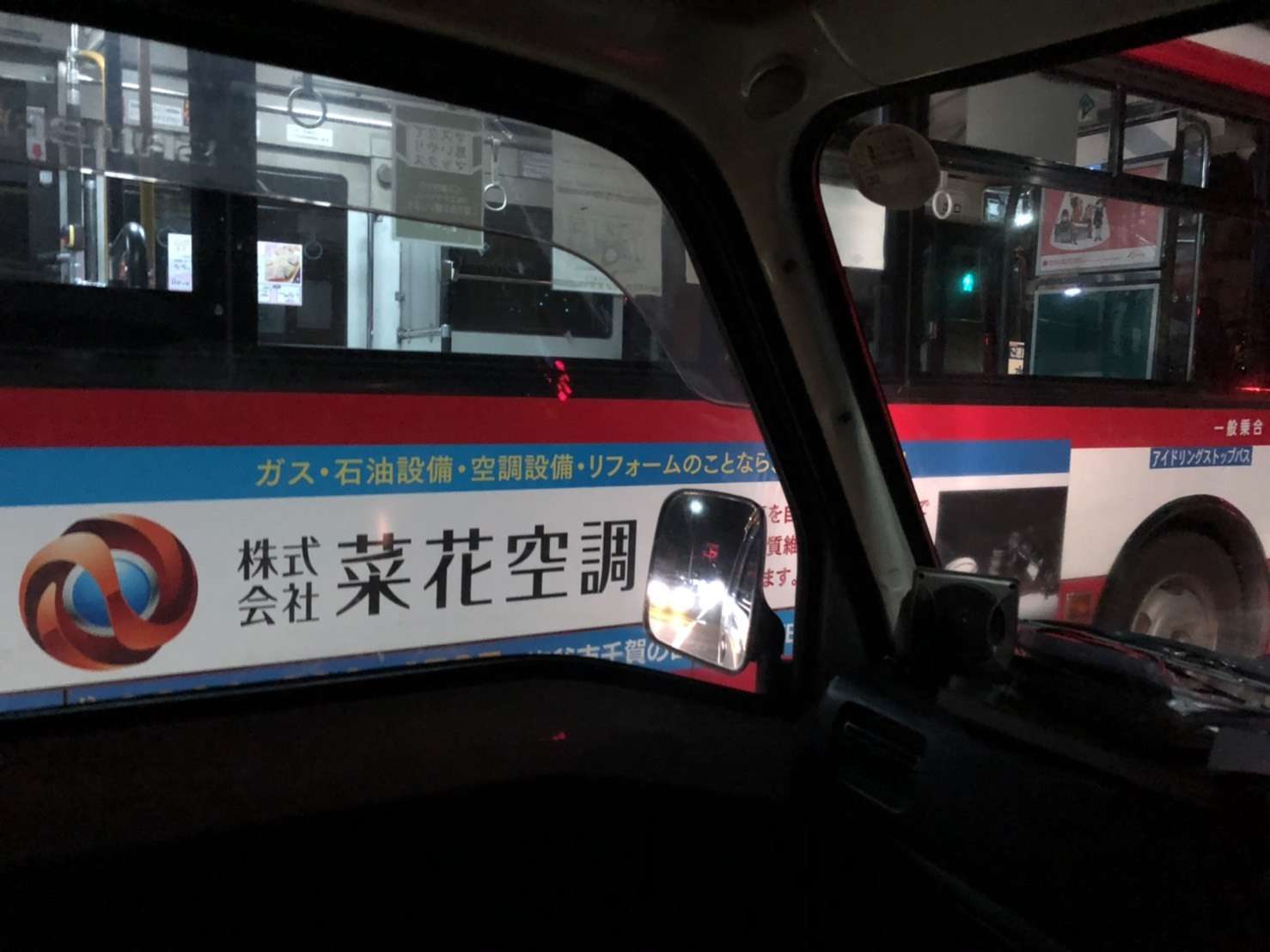 社長!看板 宮城交通さんのバスに貼ってありますよー!って。