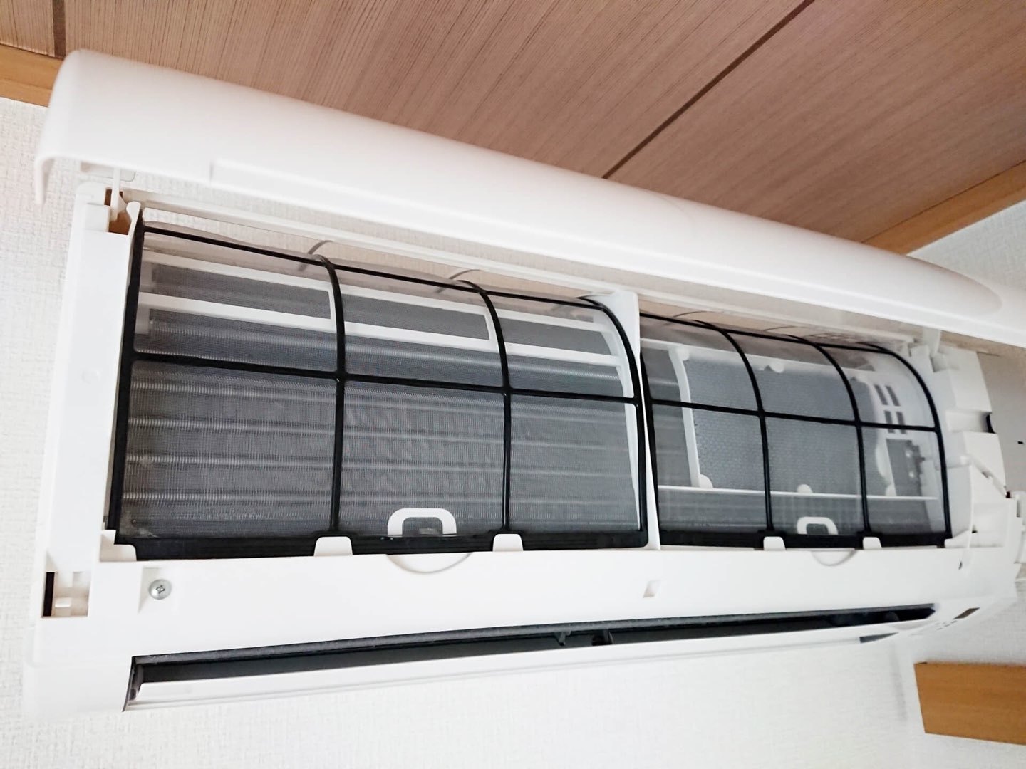 中機のカバーを開けると付いているフィルターなどに付着しているホコリやカビが臭い原因となっている場合です。