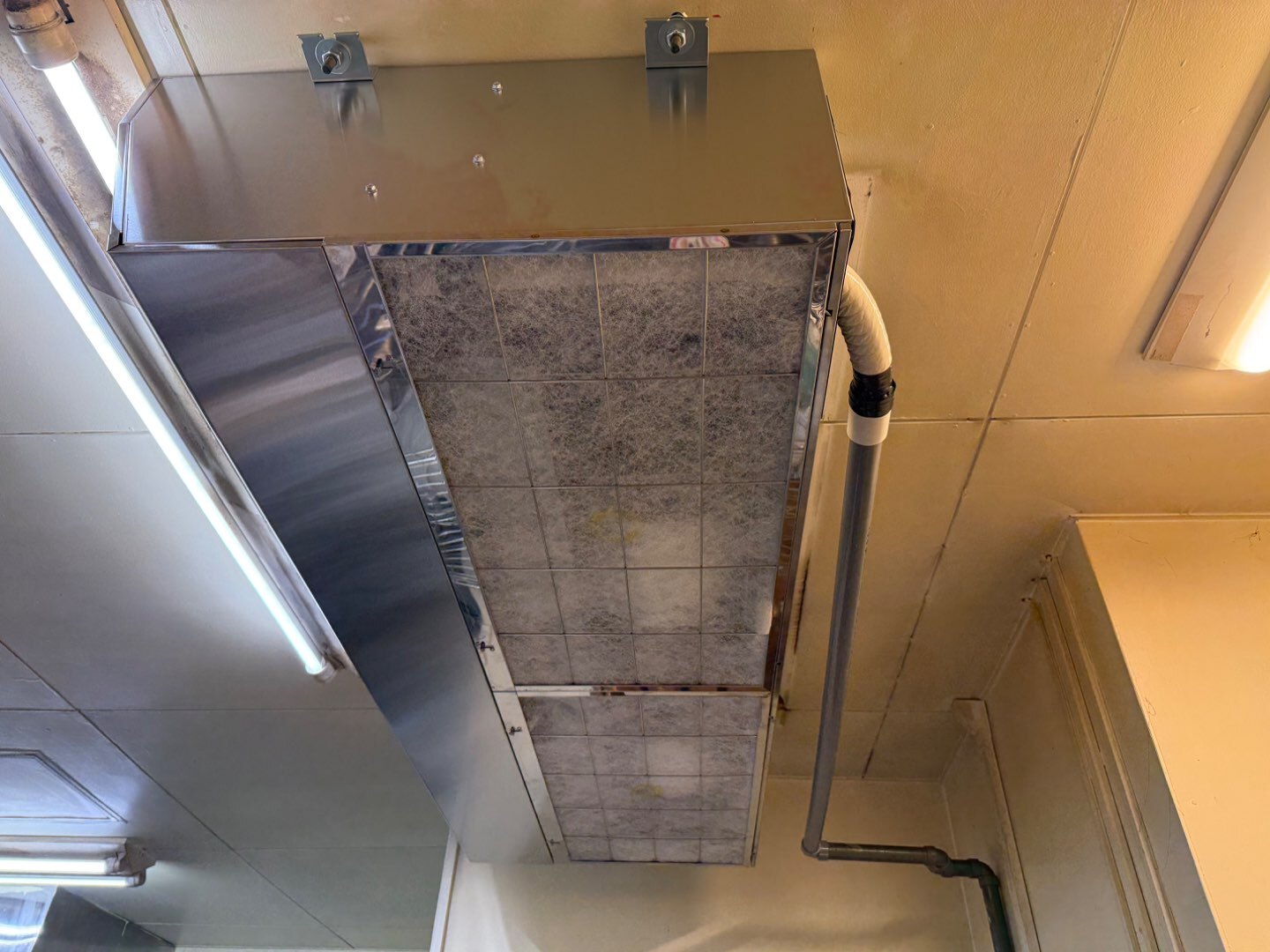 写真にもあるように、厨房用空調ではグリスフィルターの状態が非常に重要です。