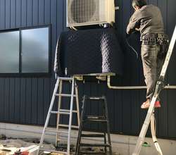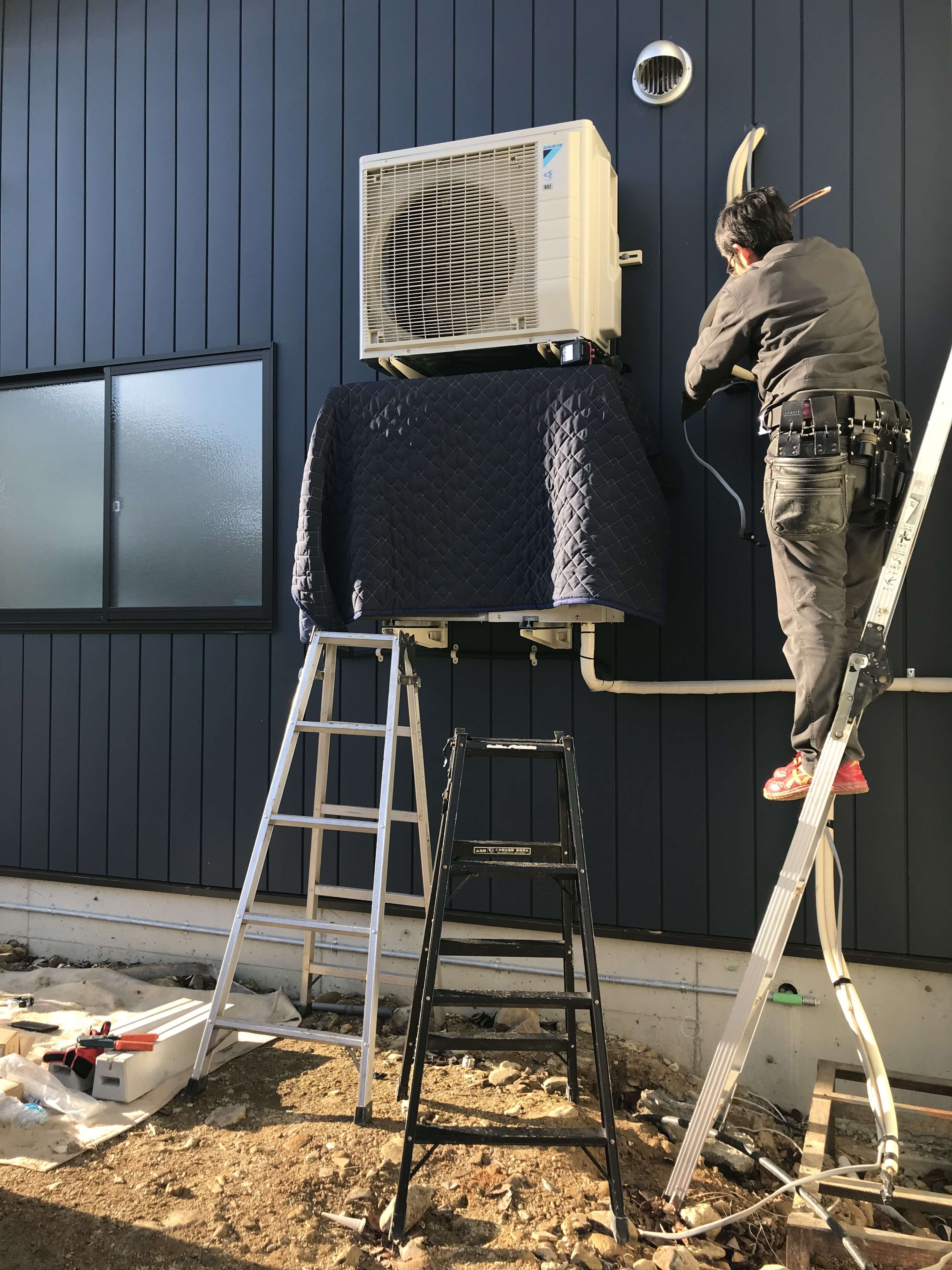 重たい側を持っているのにもかかわらず、(室外機は右側と左側で重さがちがいます)