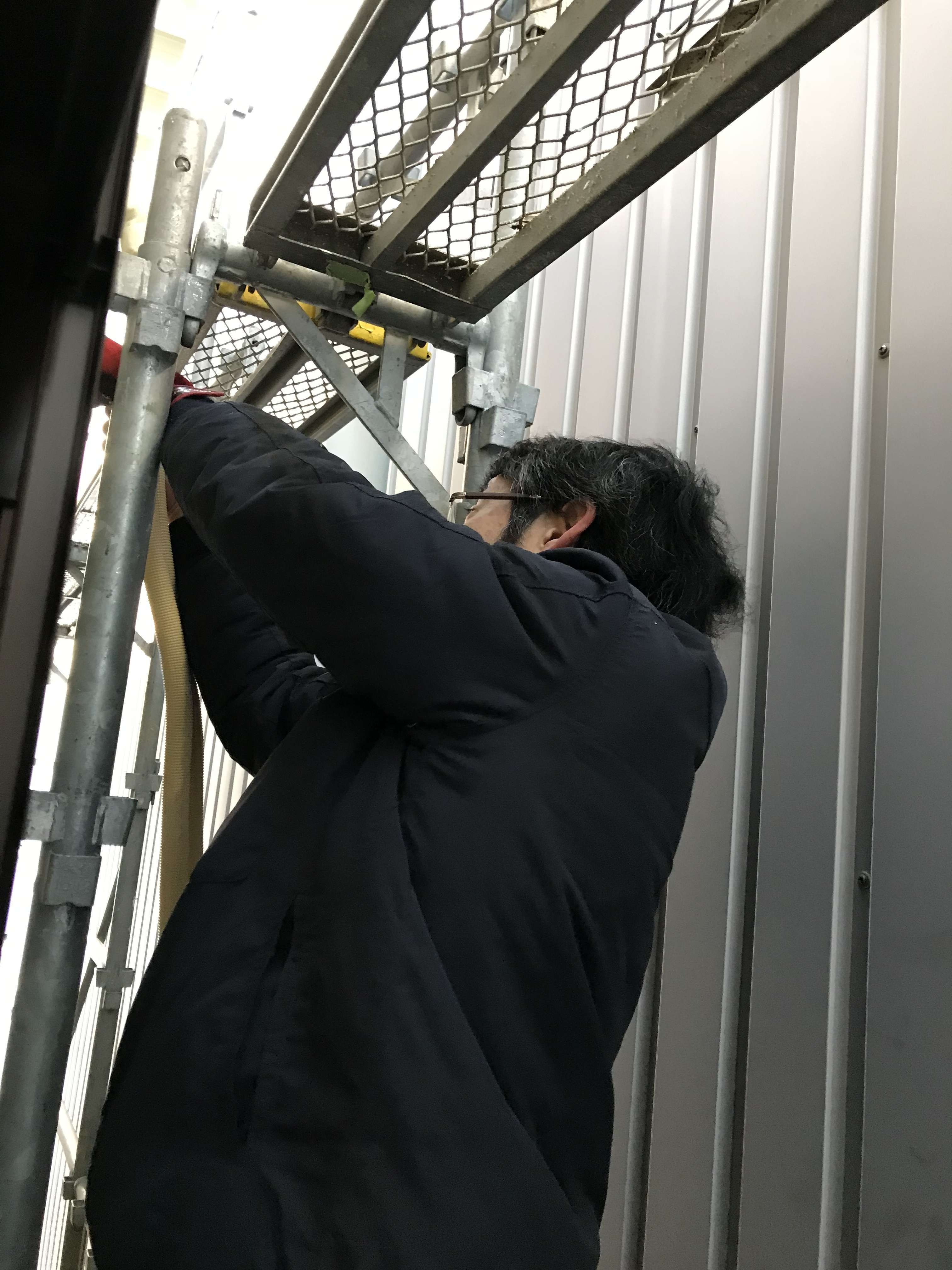 足場プラスせまいところでの作業は動きが取れず大変(*´∀`*)