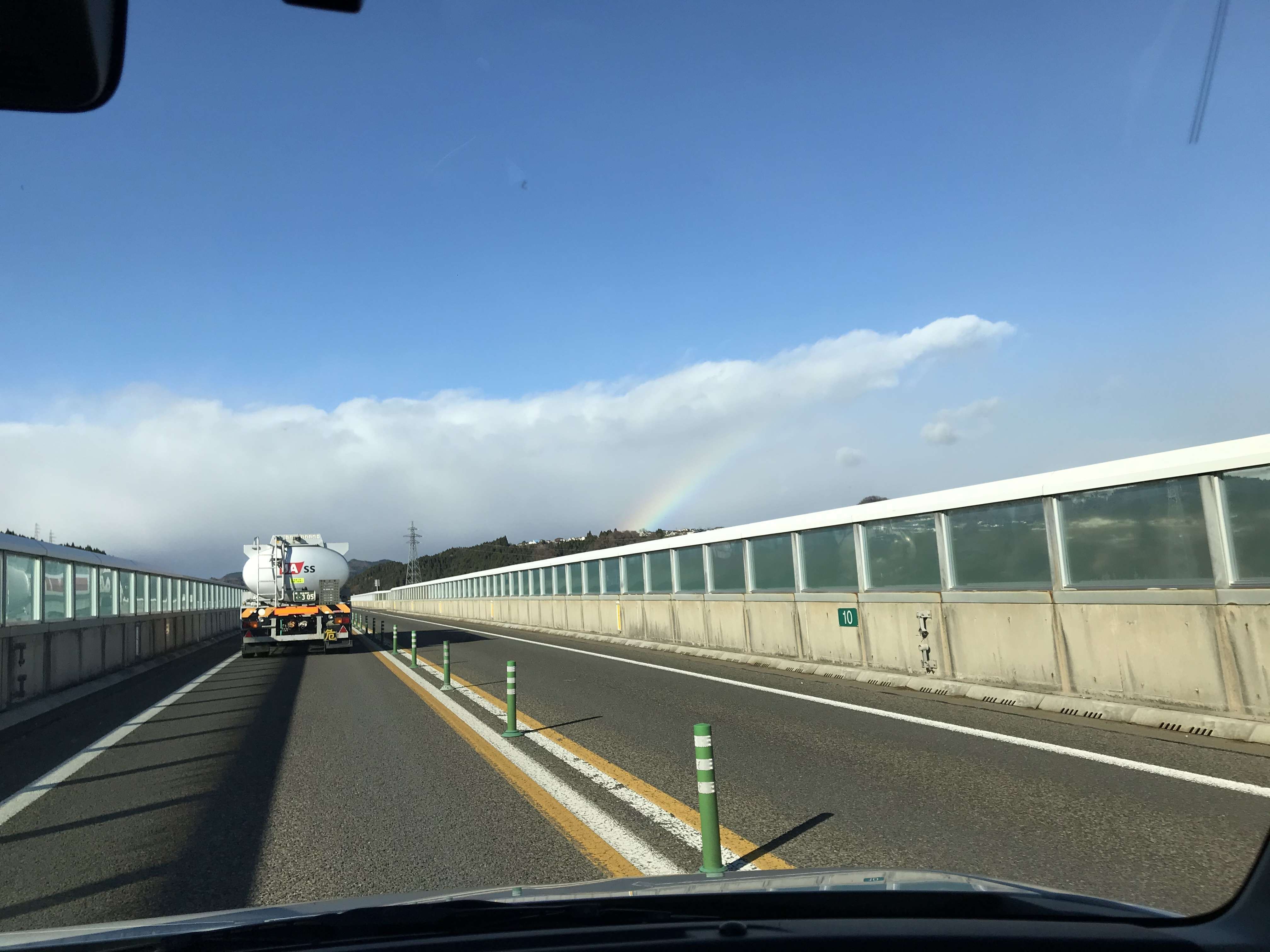 なんと現場に行く途中にも虹がみえていたんです〜(oo)