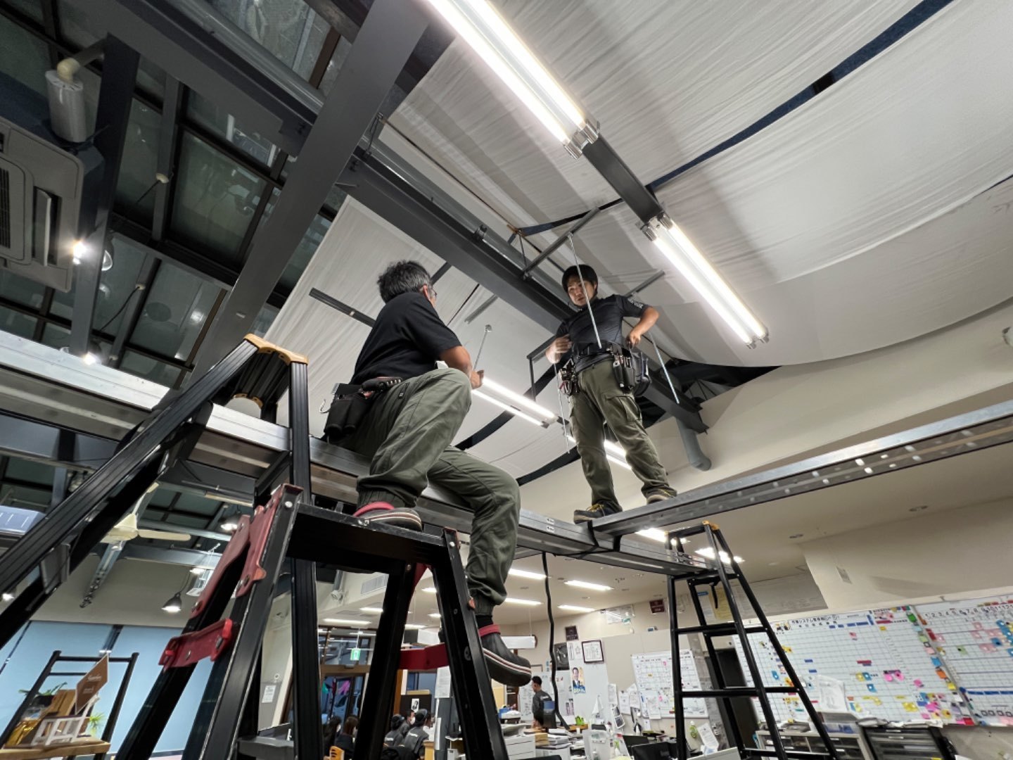 夜間作業中、ふっと気づくと同じ色合いの服着てるね😀