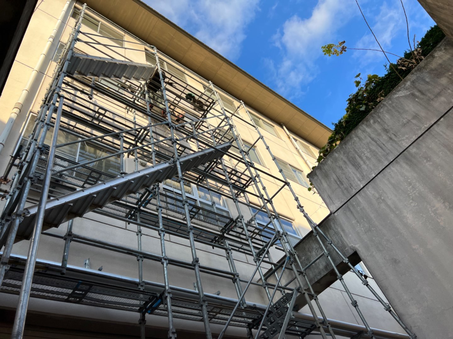 足場の階段とんとんとーんっと登り1番上まで🤭