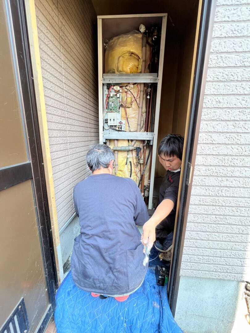 今回はこちら💁♀️小屋の中に電気温水器がお住まいです。🛖