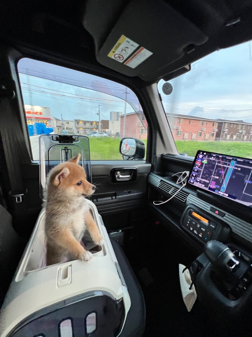 まだまだ赤ちゃんのまめさんは1人でお留守番ができずキャイーンキャイーン泣きまくるので、近場の時は助手席に乗せて出発です!