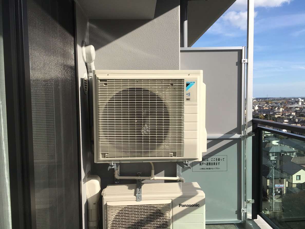 私達の大得意なガス給湯器もたくさん着いてました。リビング部分にはルームエアコンも出来上がったフロアから着き始めていました。