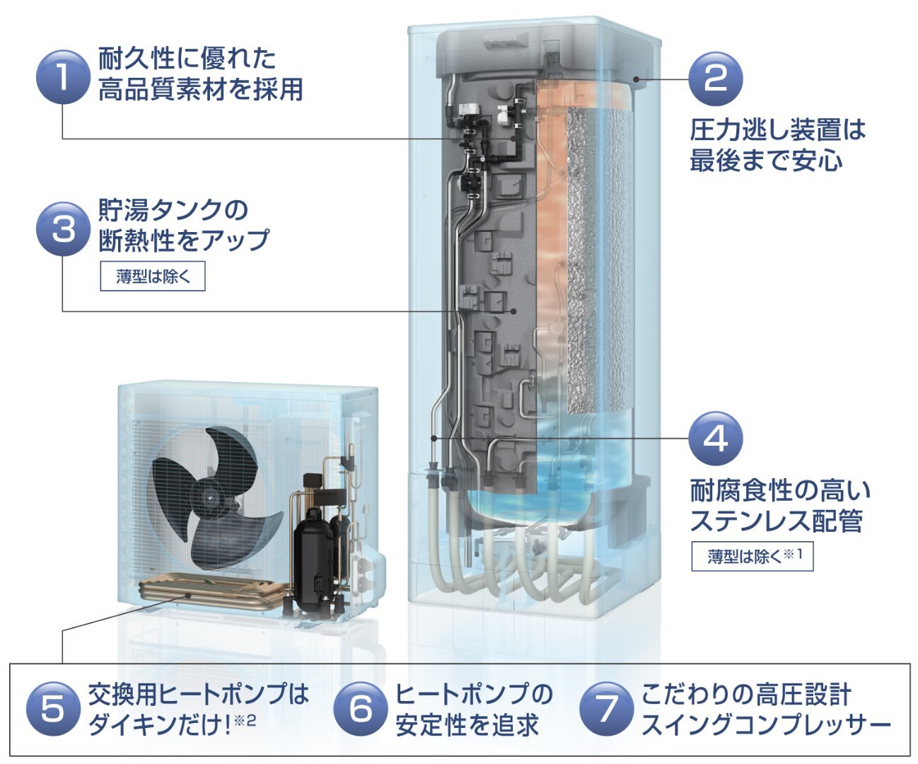 • 370L〜460Lなどの大きな貯湯タンク