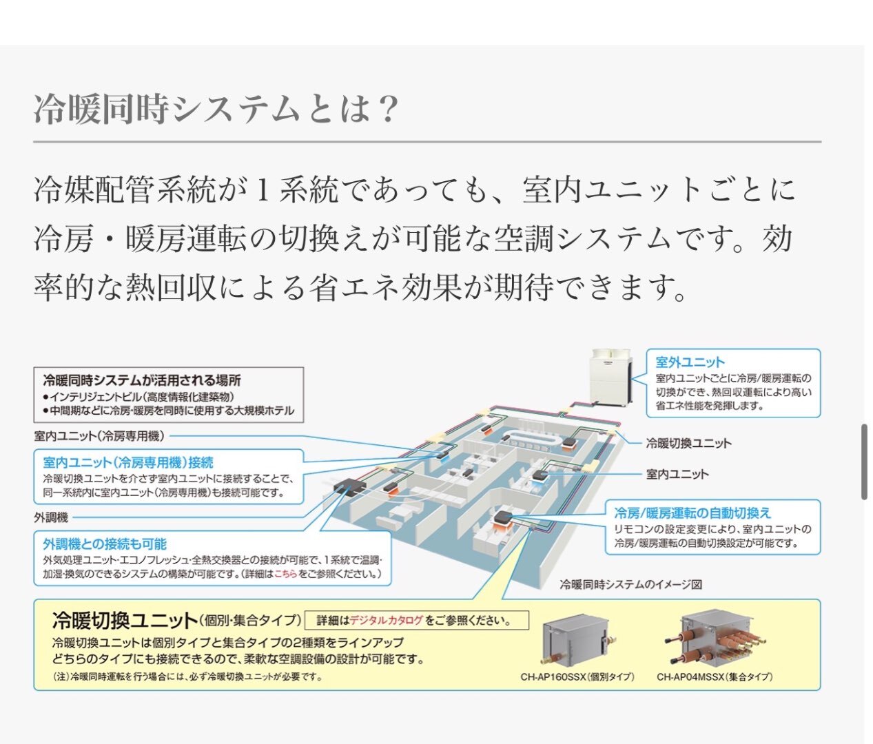 同時冷暖房が必要な建物ほど、冷暖フリーの真価が発揮されます。