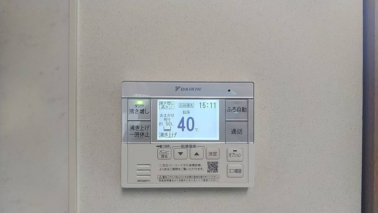 また、エコキュートの操作もスマートフォンから可能になっています。スマホからリモコン操作ができ、出かけている間にお風呂を準備したり、節電モードに設定したりと、快適さと便利さを追求しています。