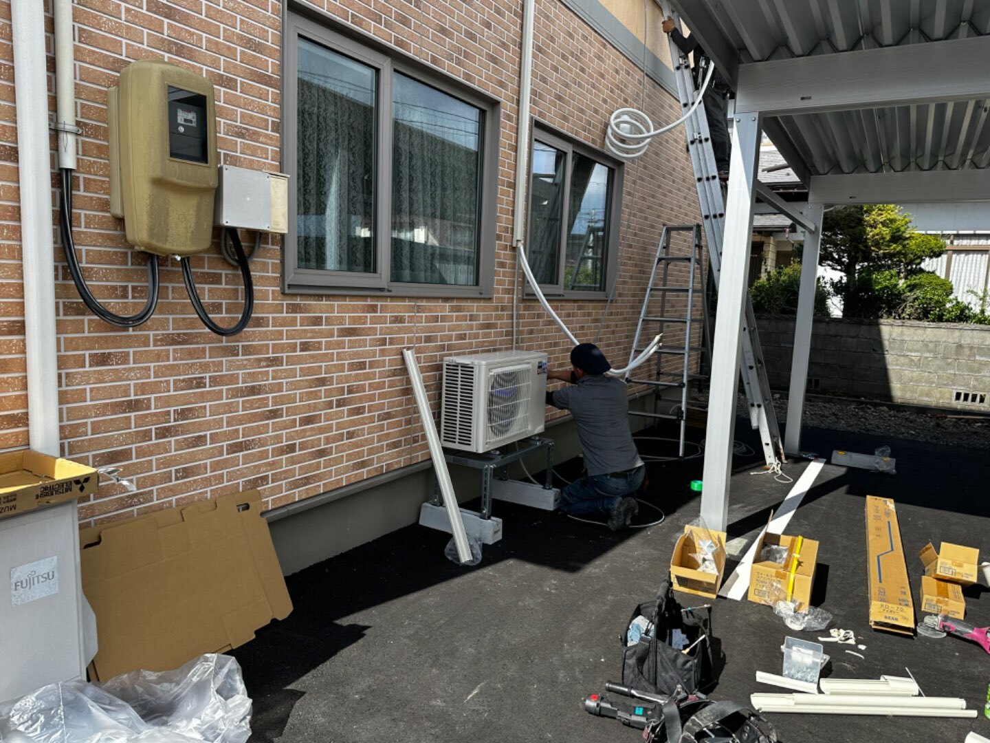 配管もまっすぐ下に降りていて、室外機も真っ直ぐ水平に並んでいて、最高の仕上がりですね〜😳
