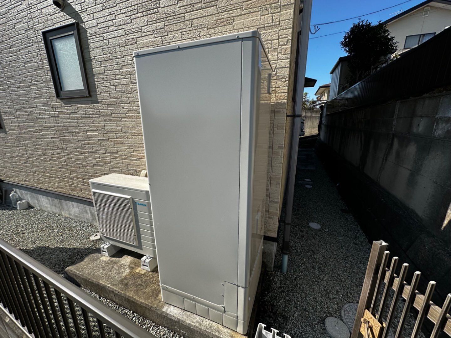 保温を終えたら、エコキュートを固定するアンカーを打ち、エコキュートを設置しました‼️