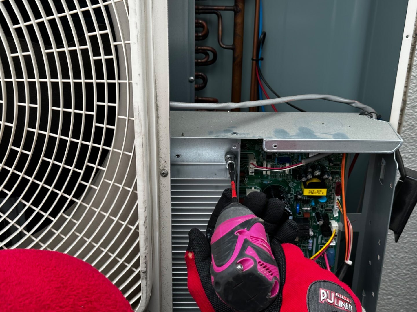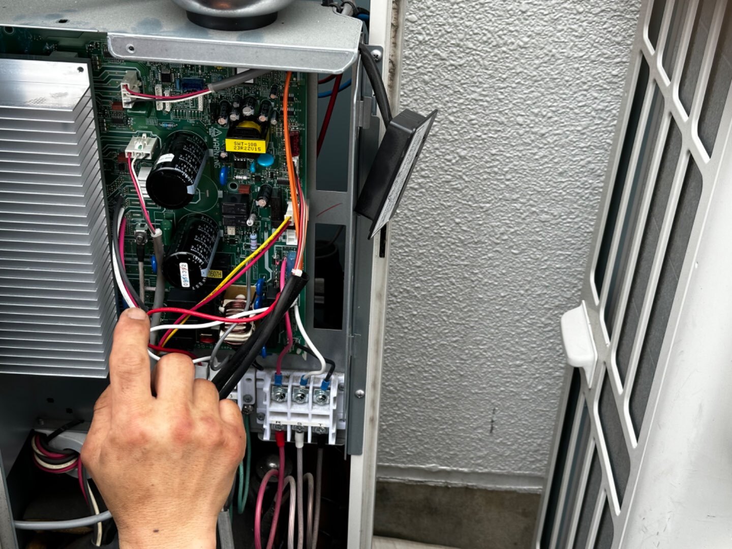最後に、室外機の蓋を閉めて、基盤交換完了しました‼️