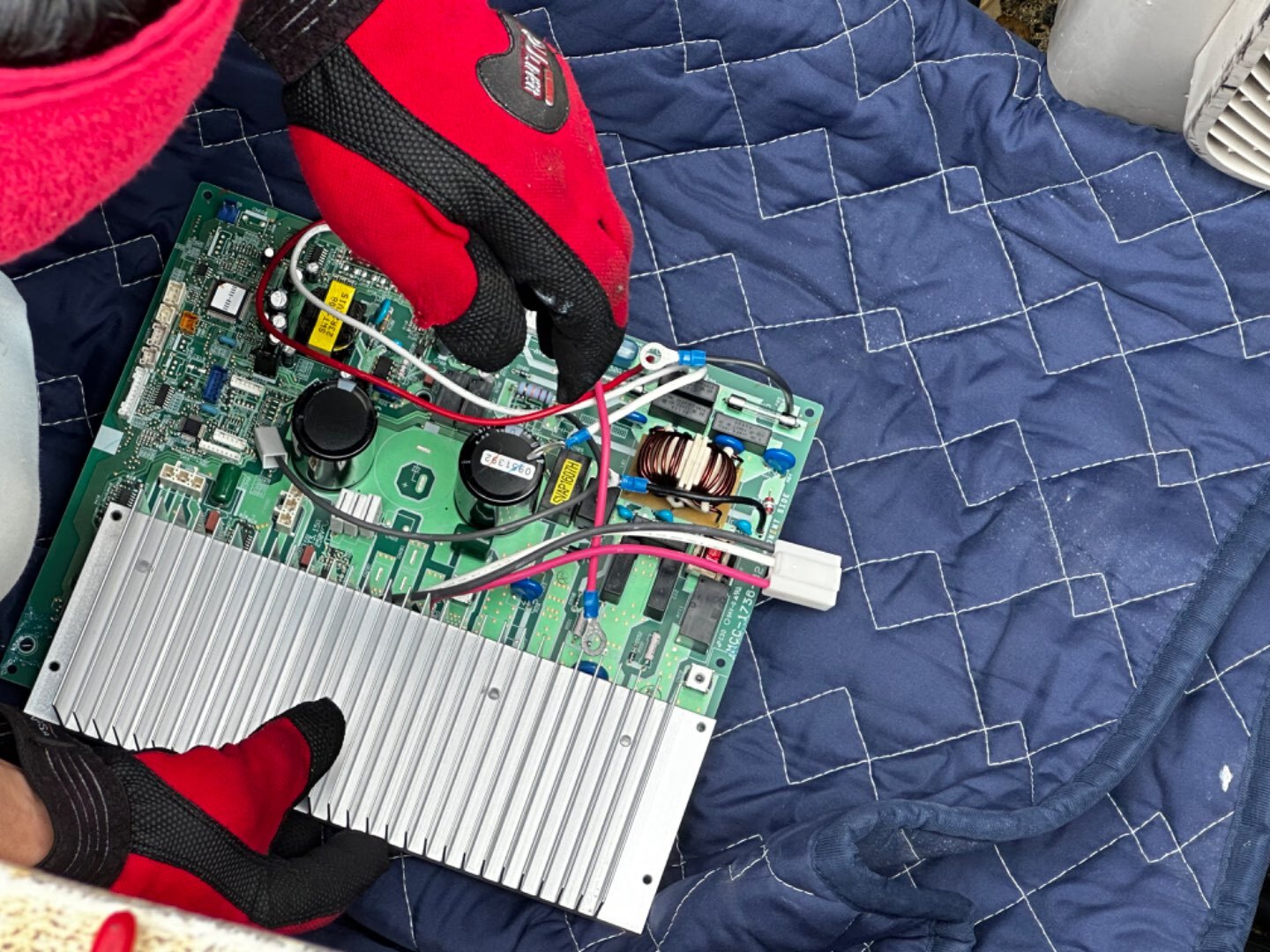 基盤を組み立て終え、室外機本体に取り付けます‼️