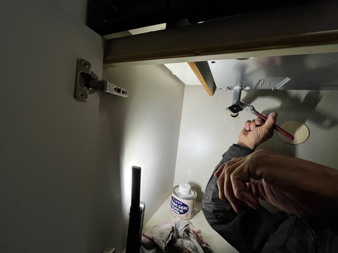 繋ぎ目には、ガスが漏れないようにするガスヘルメと言うものをつけて、しっかり工具で締めました‼️