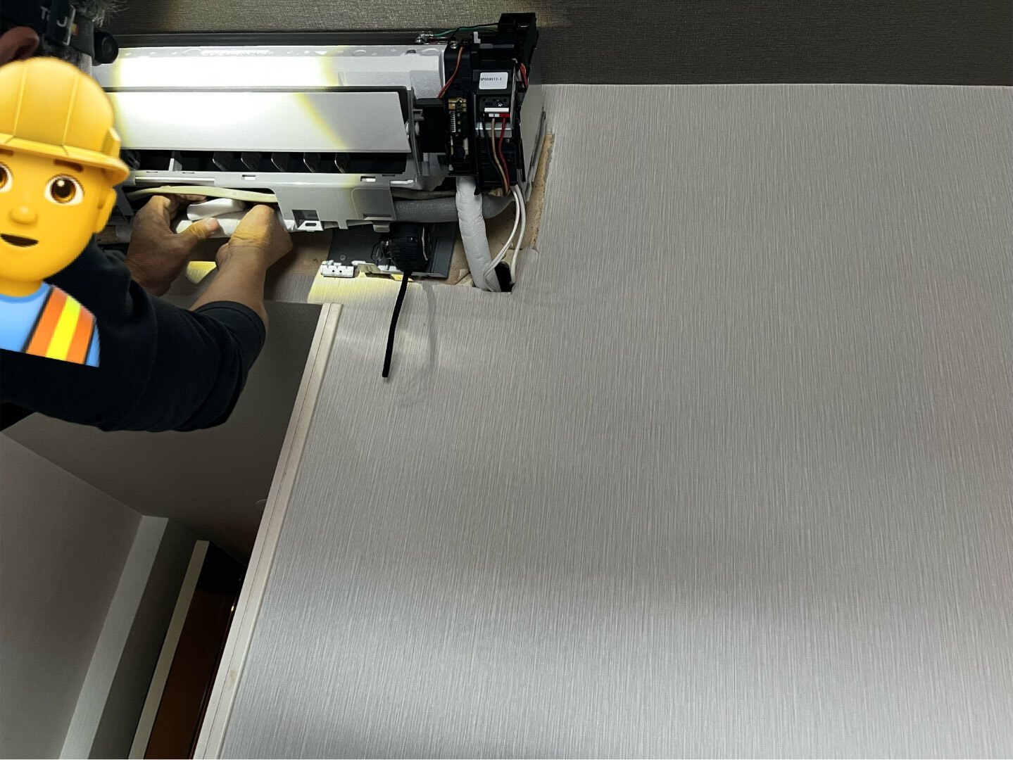 背板を取り付け、配管と電線、ドレンを繋ぎました‼️