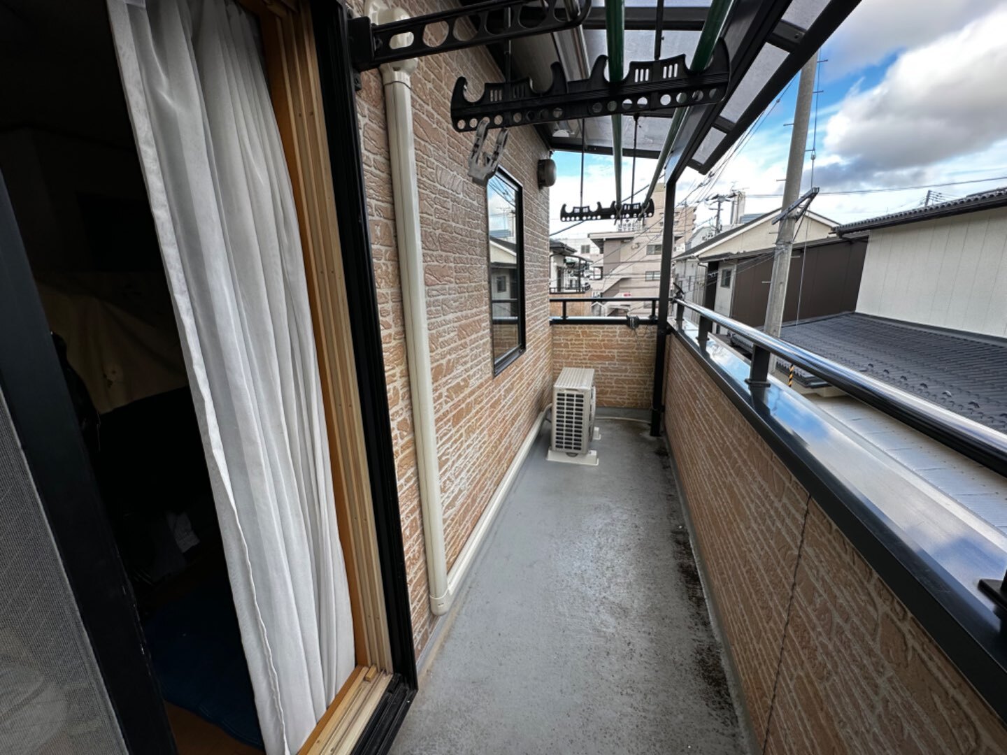 さらにお客様の希望により室外機をベランダの端に設置して頂きたいとのことでしたので、スリムも端まで綺麗に貼りました‼️