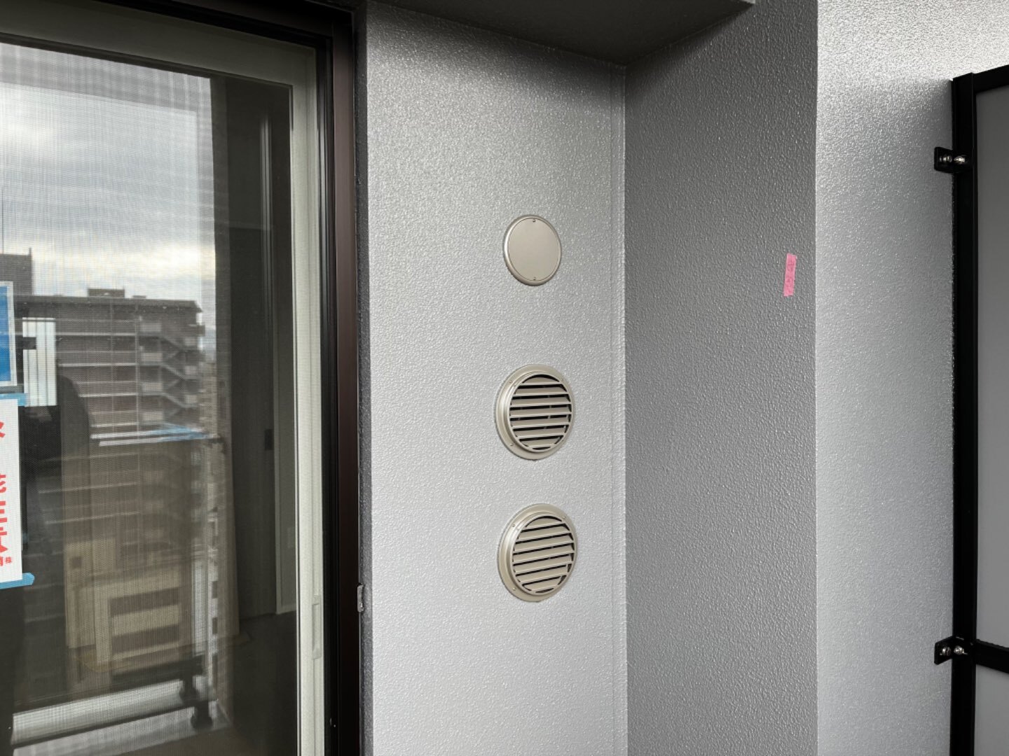 壁の色はグレーで、配管穴の下には、換気が付いてありました🤔