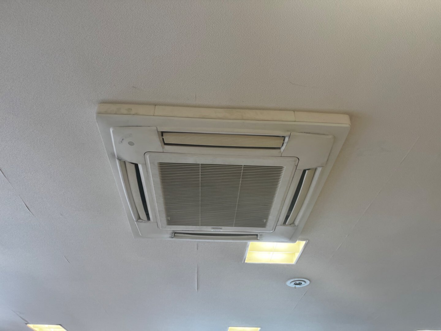 まずは室内機の数や配置、型式などを写真取り、どこに何台ついているか調査してメモ帳に図面を書き、後から見てもここに何がついているかを思い出せるように調査しておりました‼️