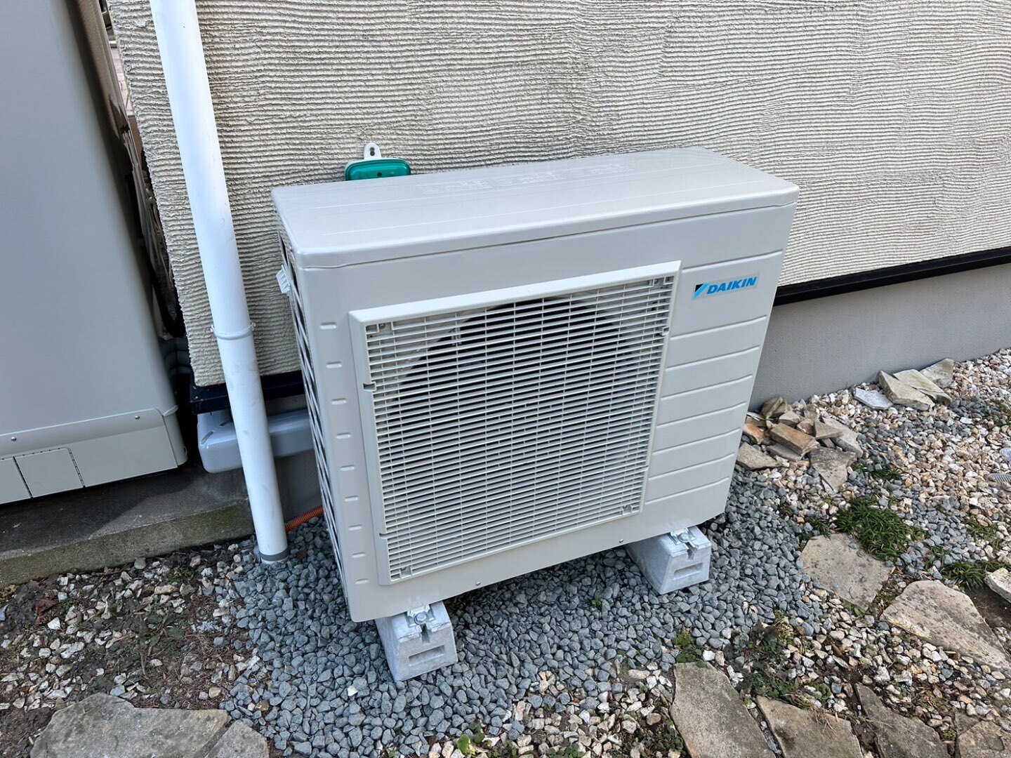 設置した後は、ヒートポンプの水平を取り、斜めになったりしないようにしました‼️