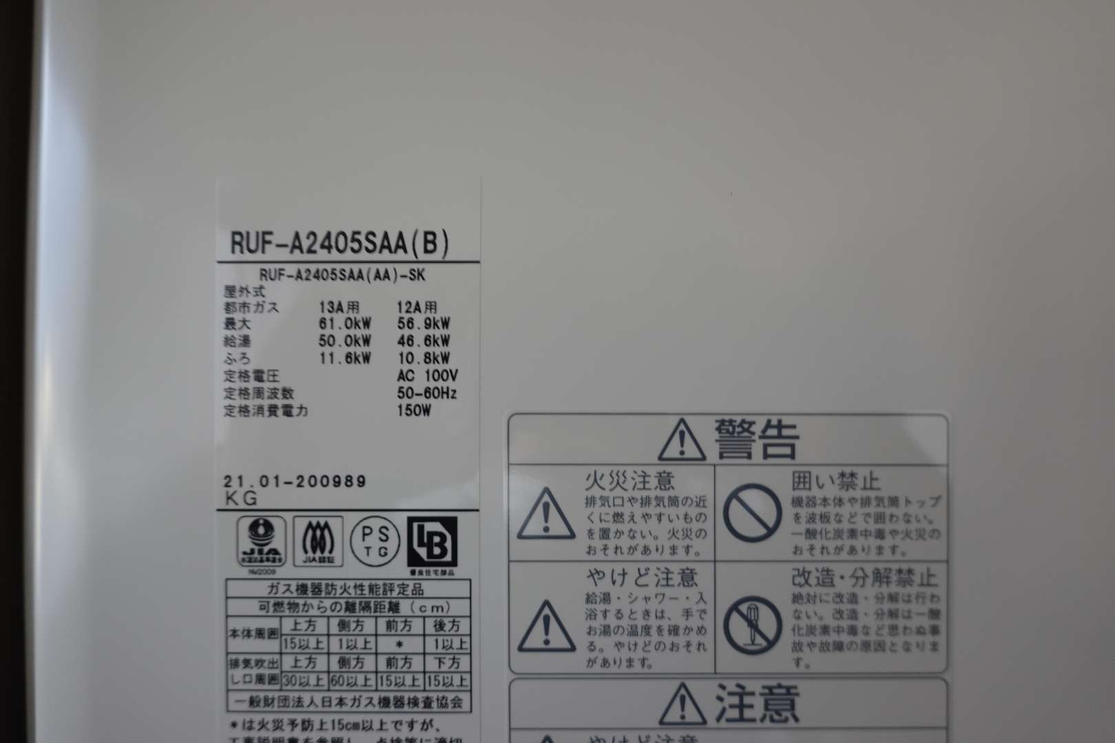 5.新規機器情報 Rinnai リンナイ RUF-A2405SAA(B) 13A