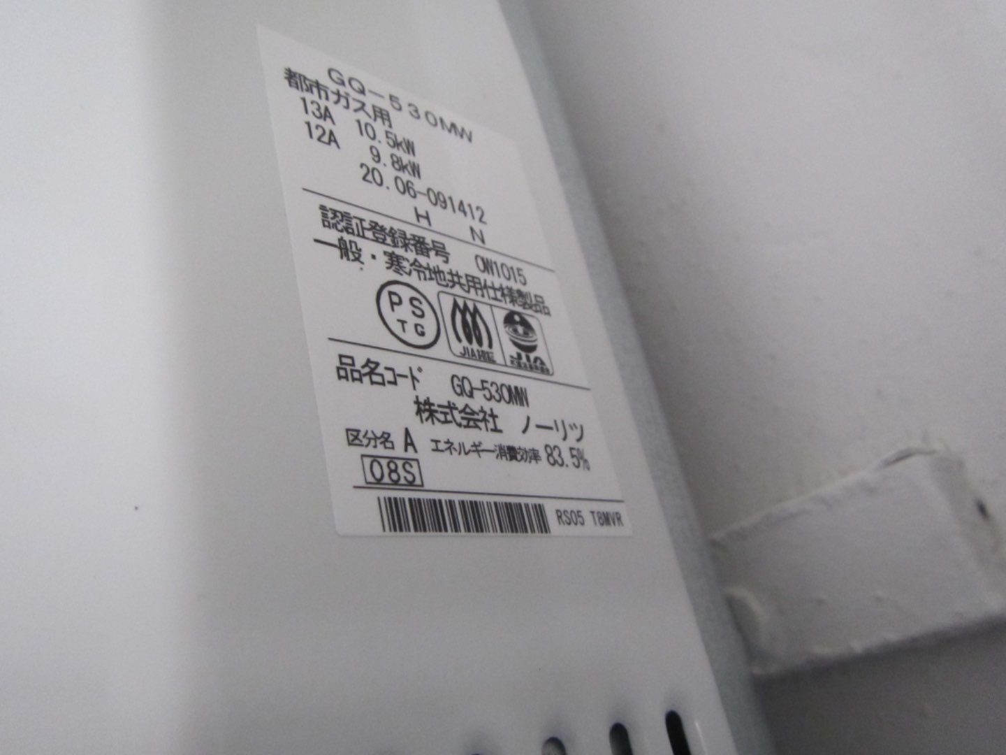 2.新規機器情報 ノーリツ 型式 GQ-530MW13A。