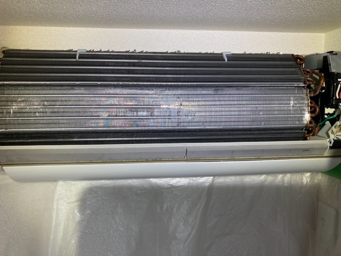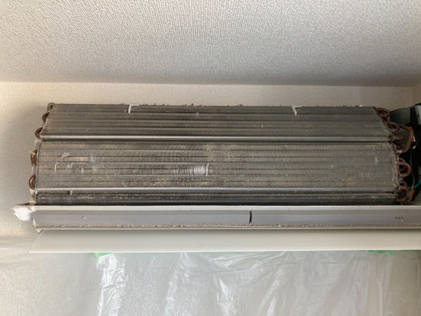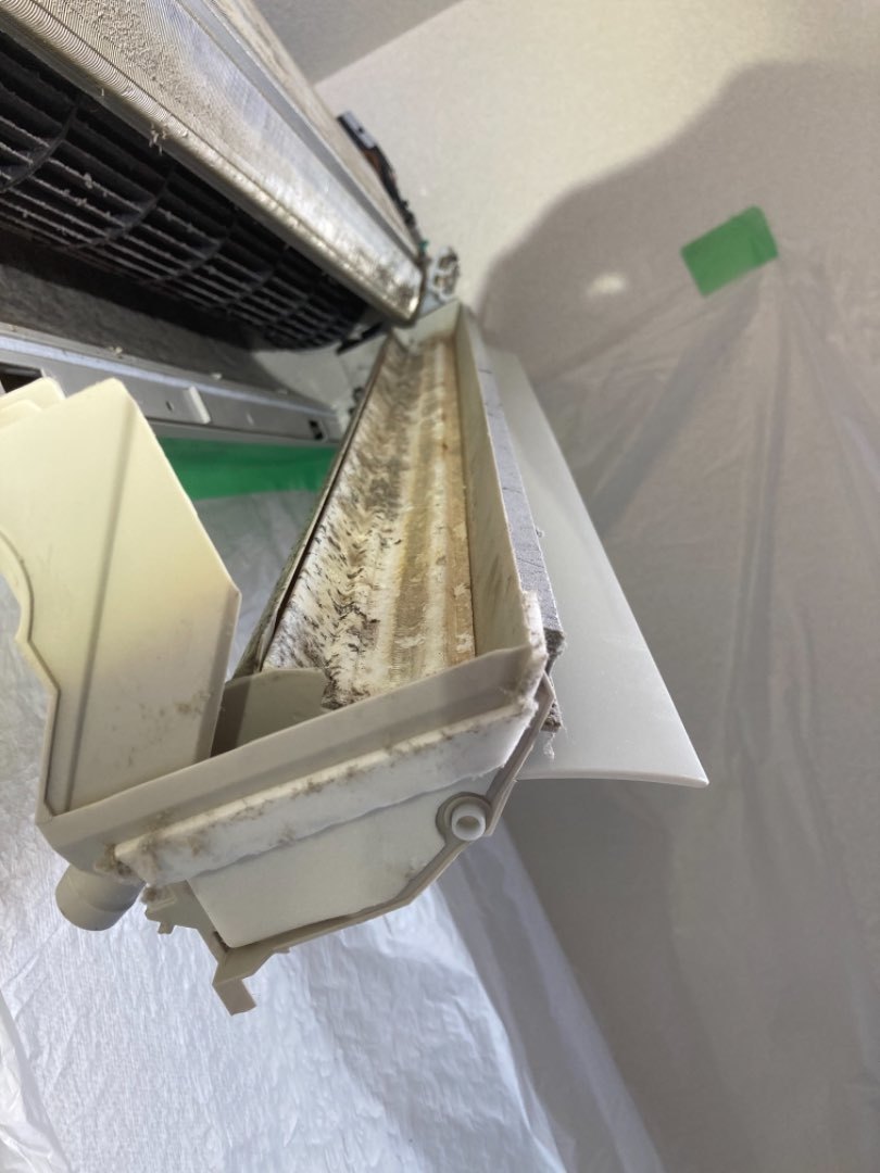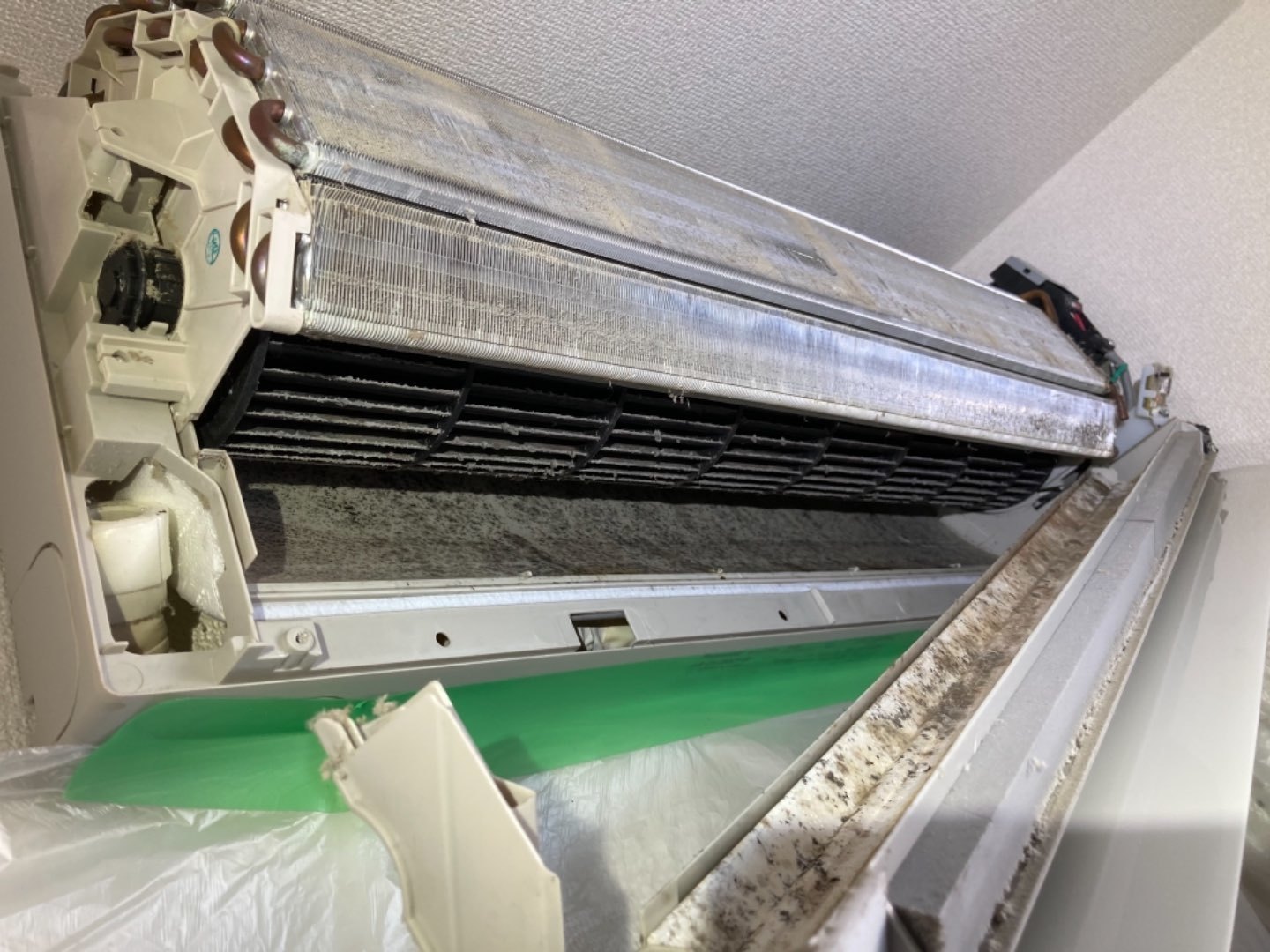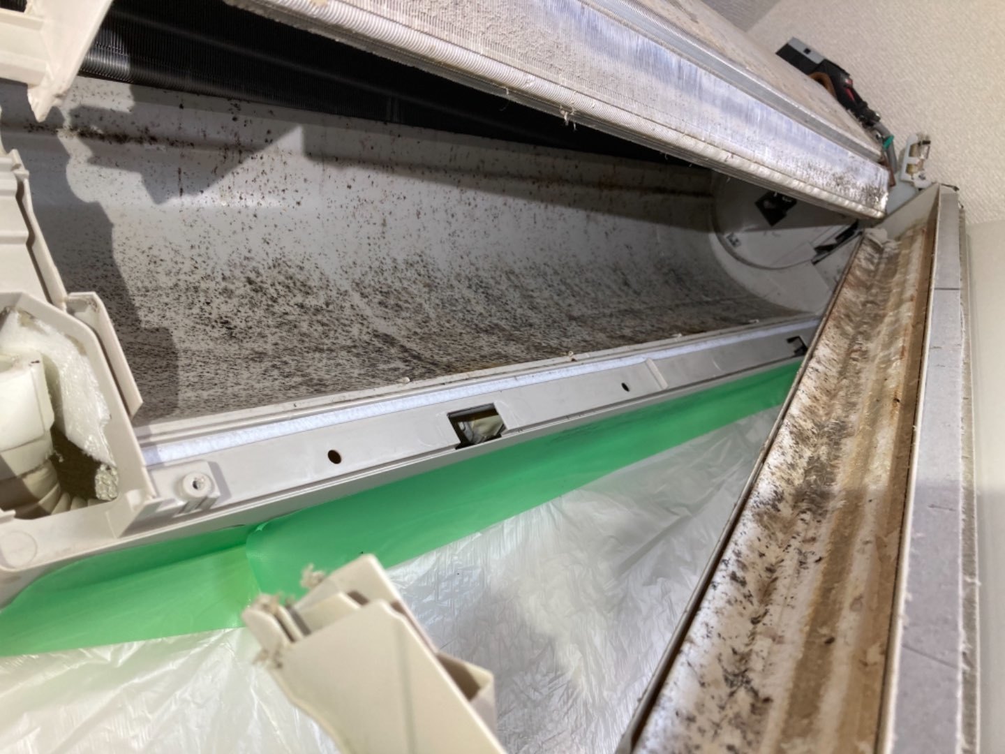1.既存ルームエアコン、カビ汚れがひどい為洗浄作業。
