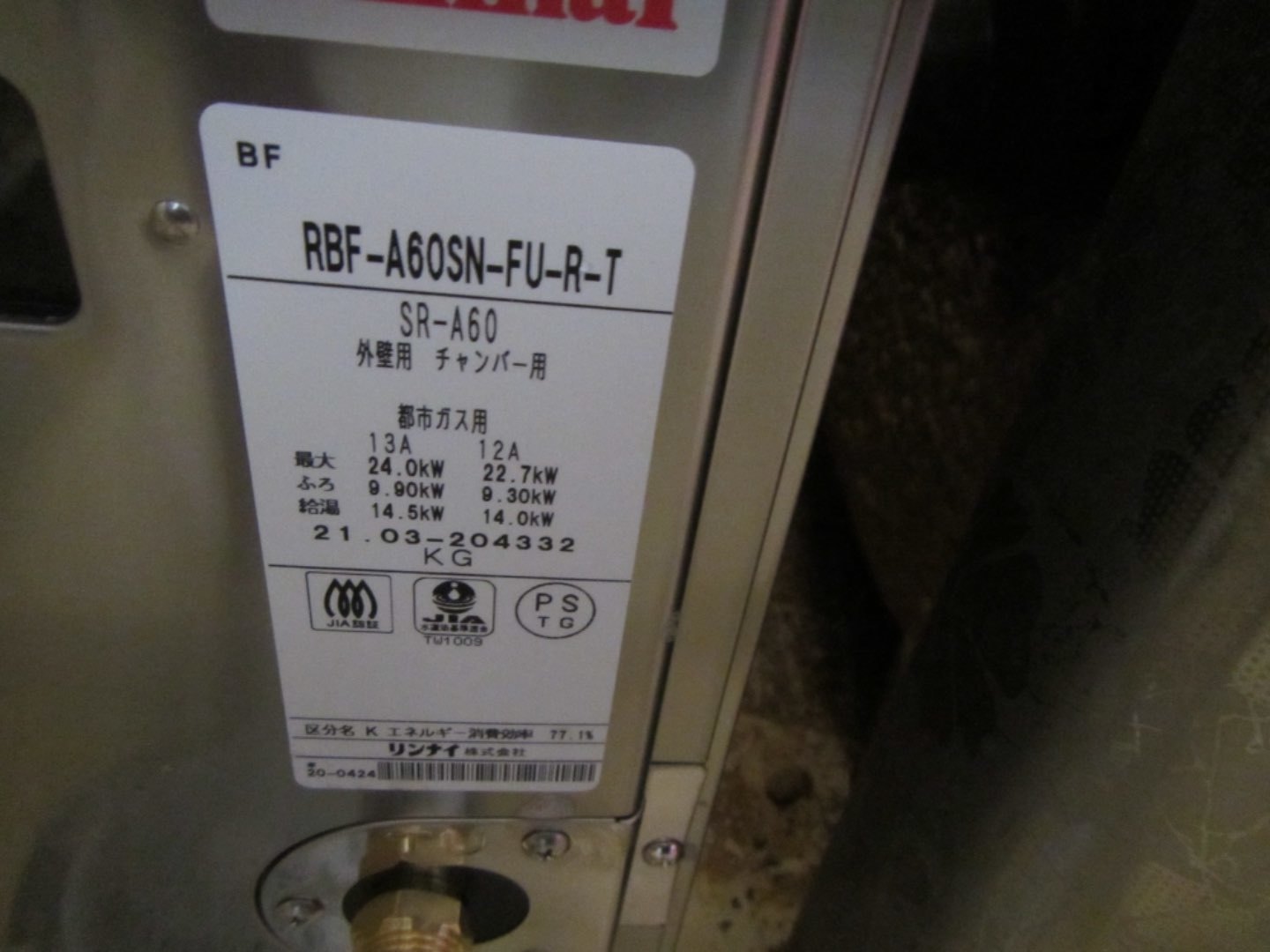 3.新規機器情報 リンナイ 型式 RUF-A60SN-FU-R-T 。