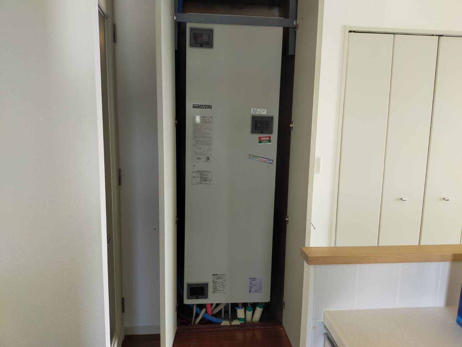 1.既存三菱電機電気温水器漏水故障の為交換工事。