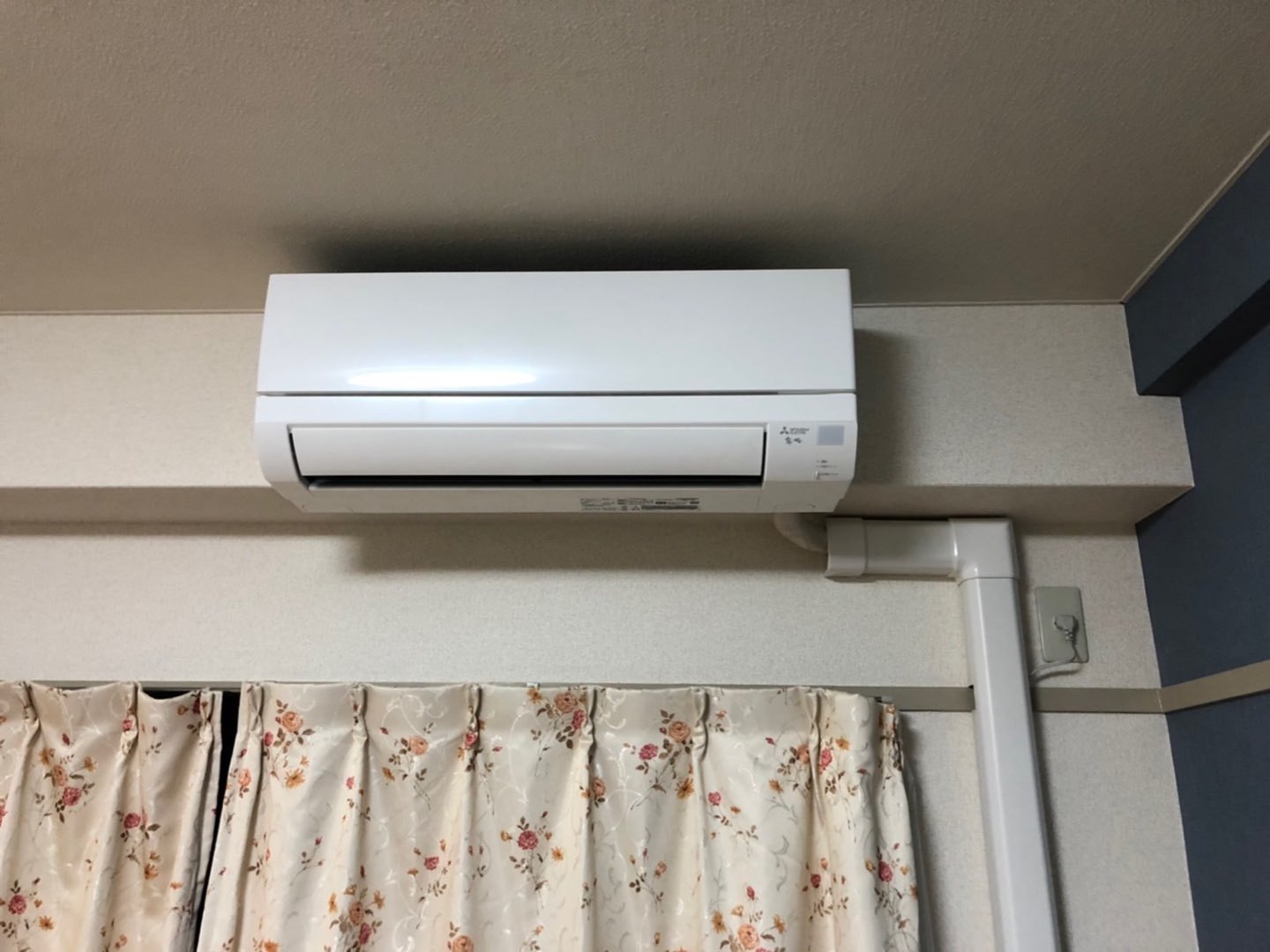 1.既存賃貸アパート空室の為三菱電機ルームエアコン取付工事。