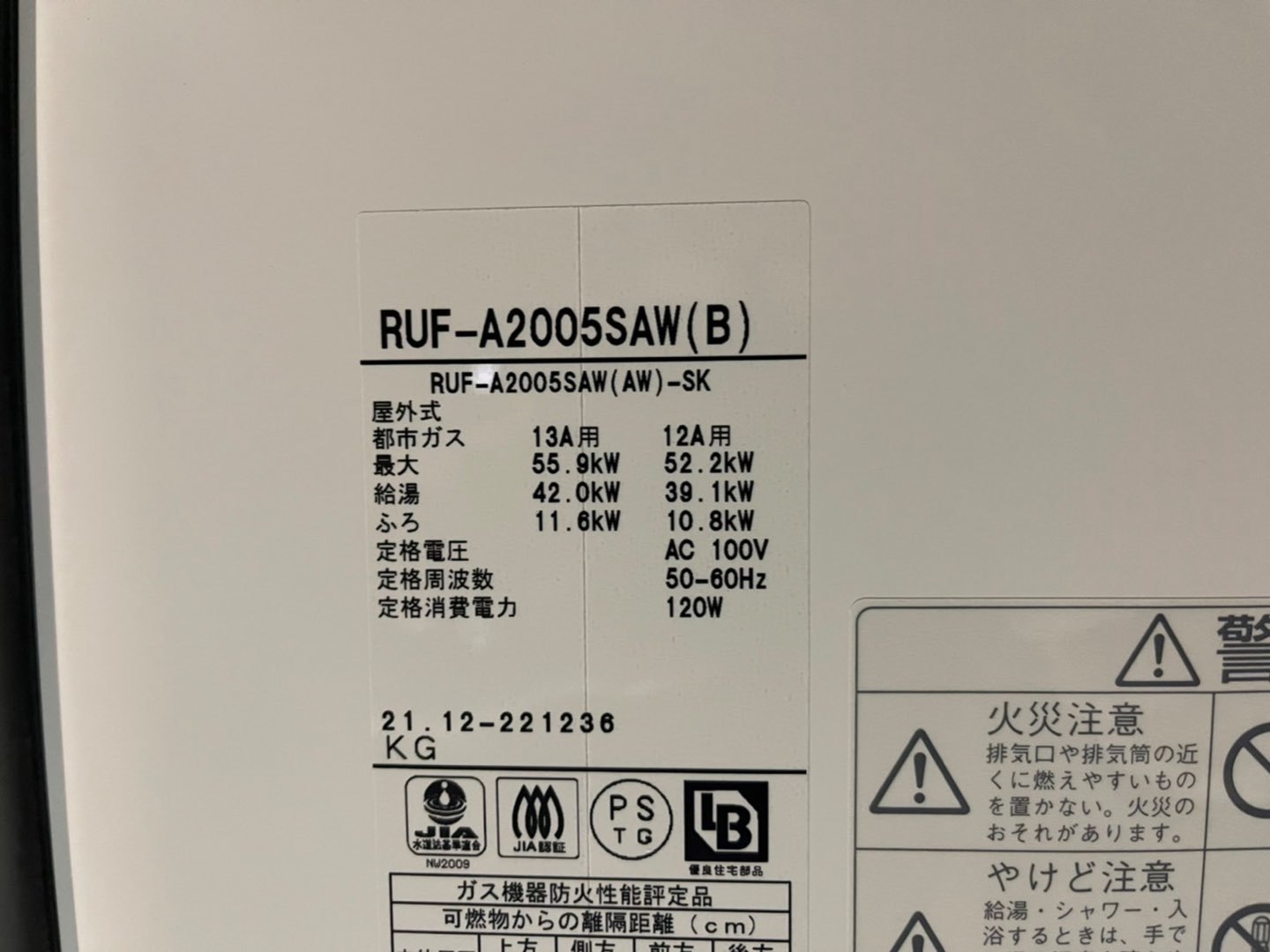 6.新規機器情報 リンナイ ガスふろ給湯器。