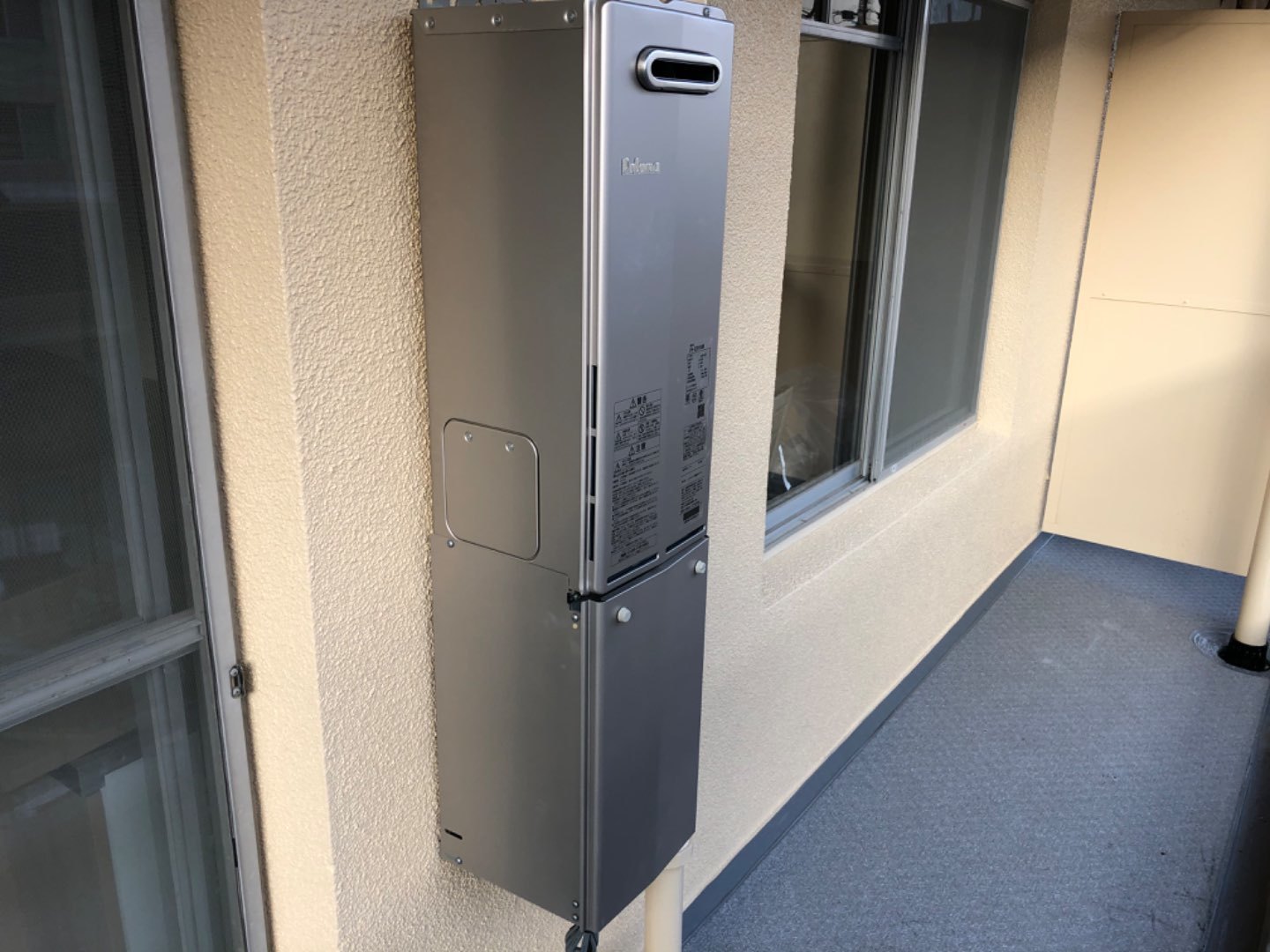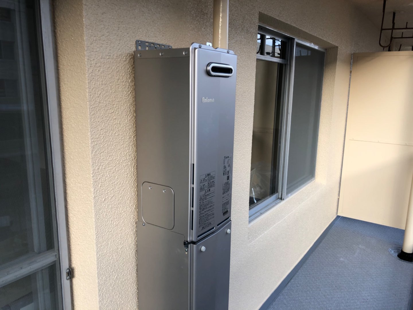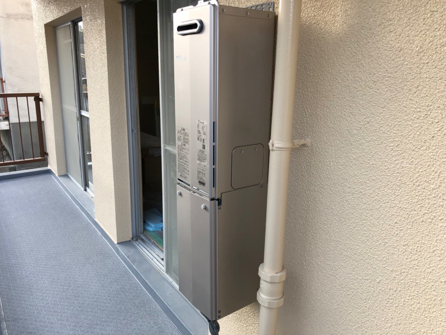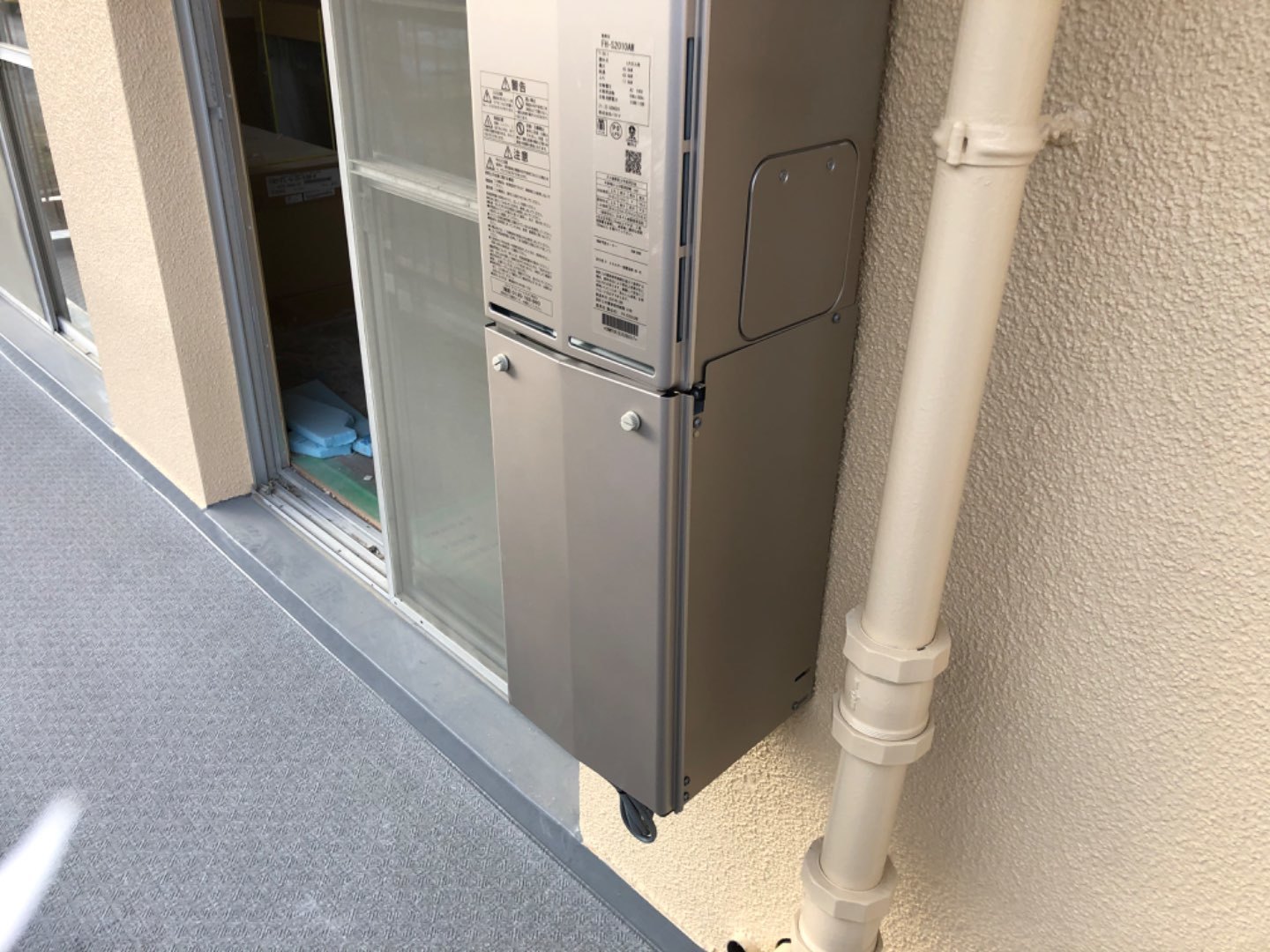 1.賃貸マンション大規模改修工事に伴う新規ガスふろ給湯器取付工事。