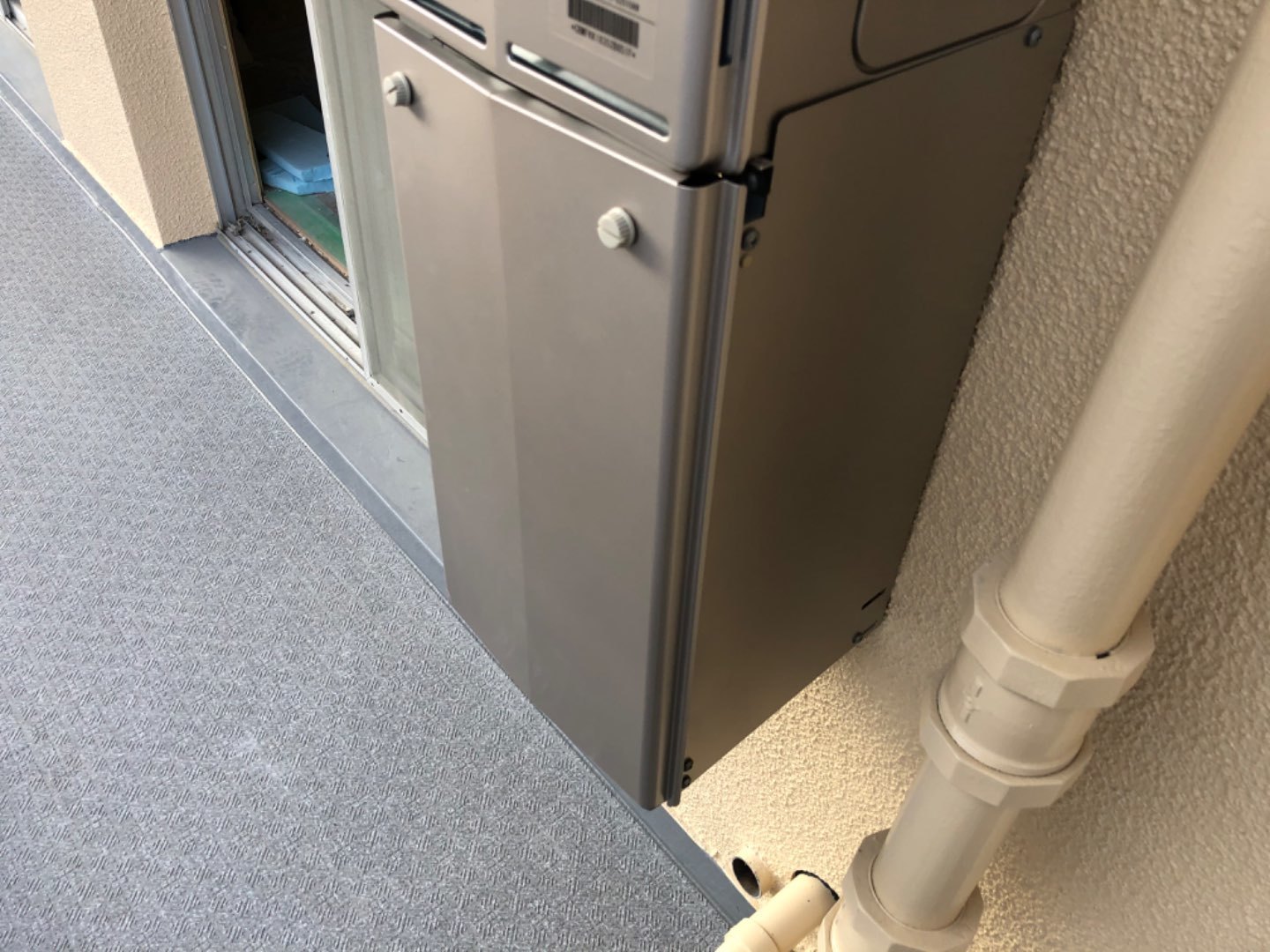3.ベランダ外壁新規ガスふろ給湯器取付工事。