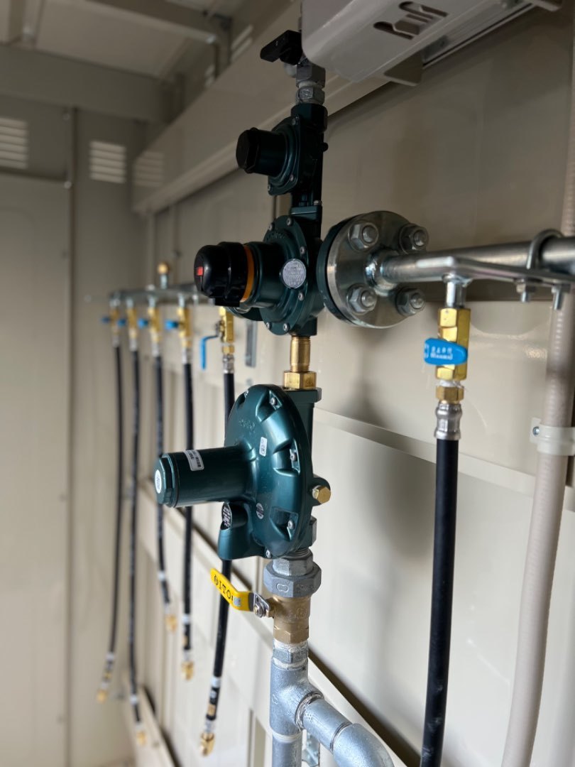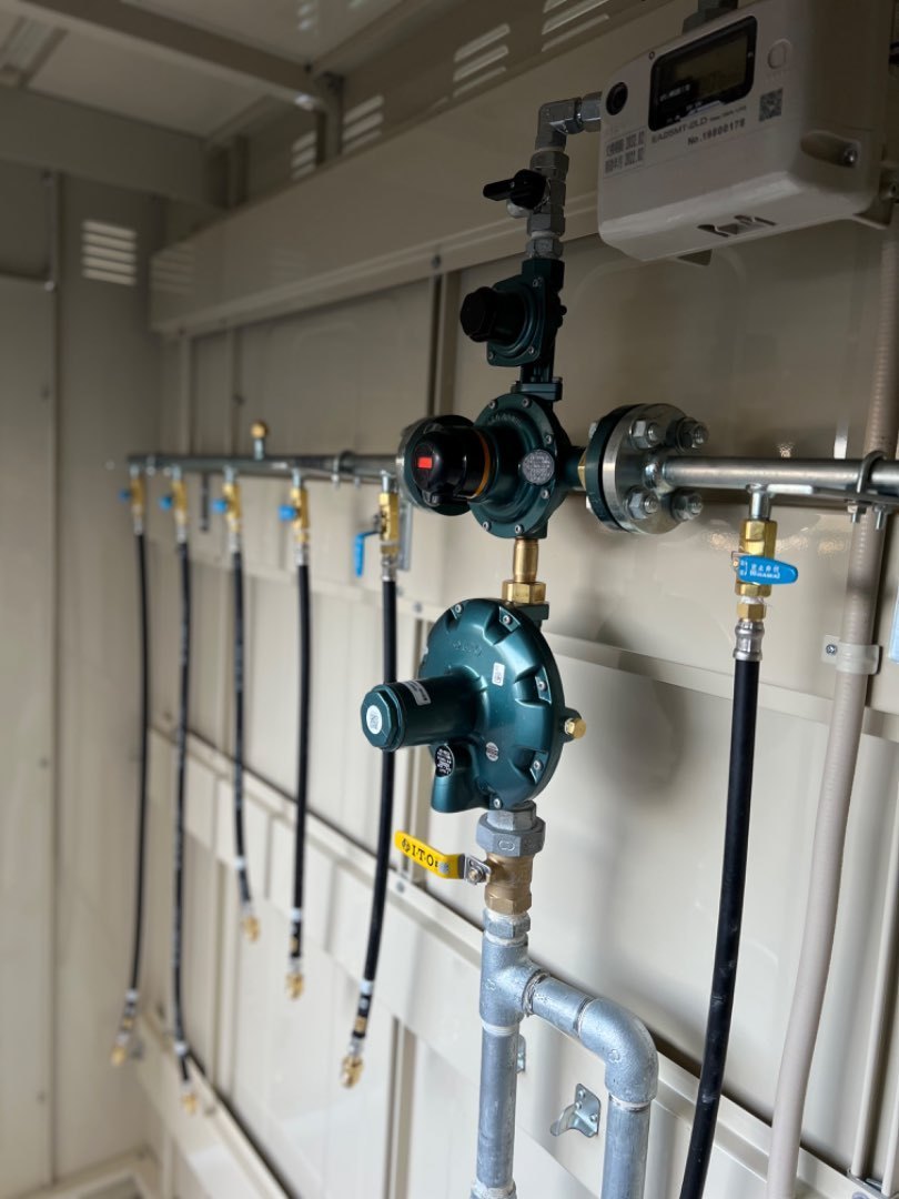 5.ボンベ庫新規設置工事。集合装置設置・付帯配管工事。