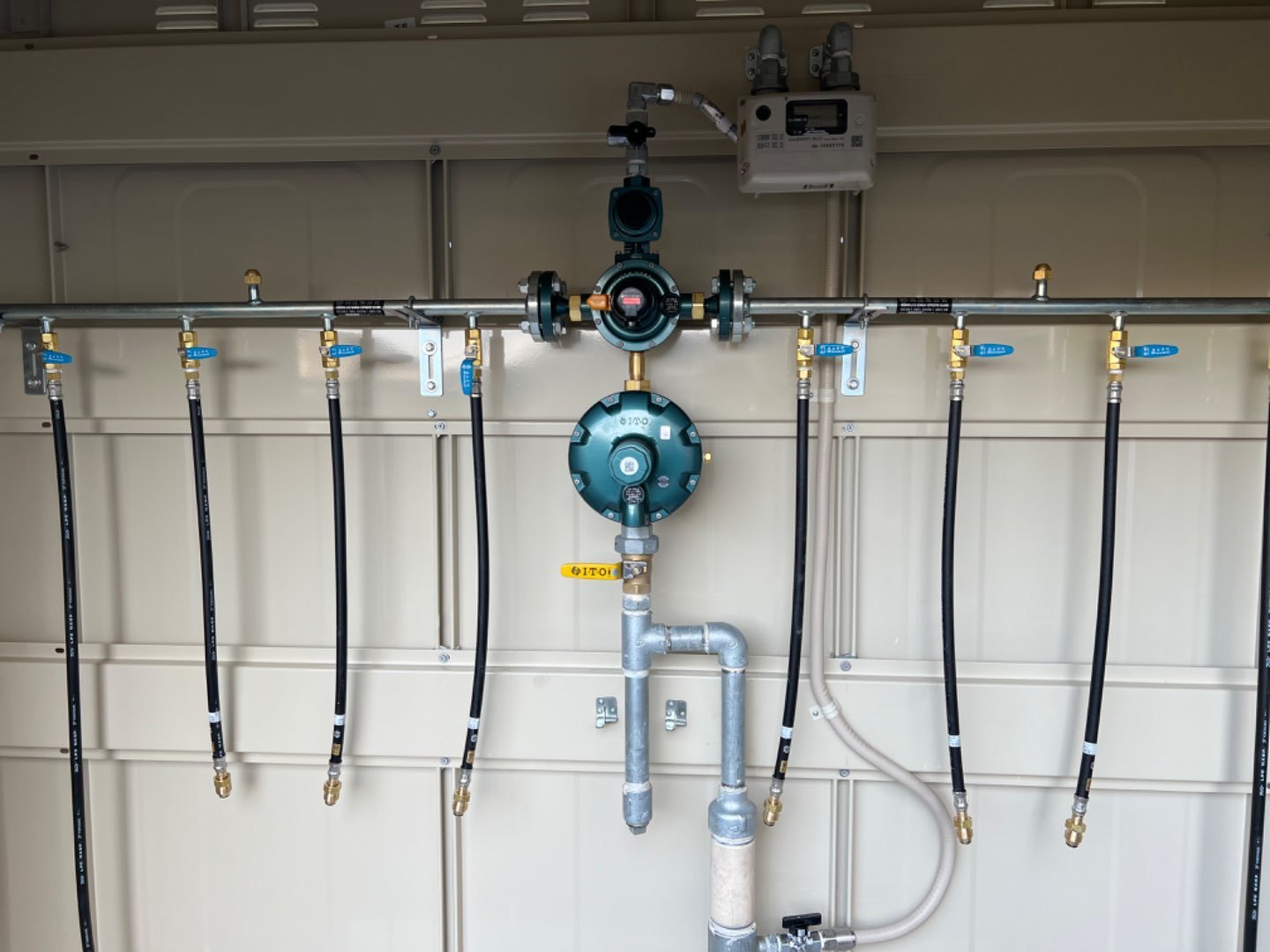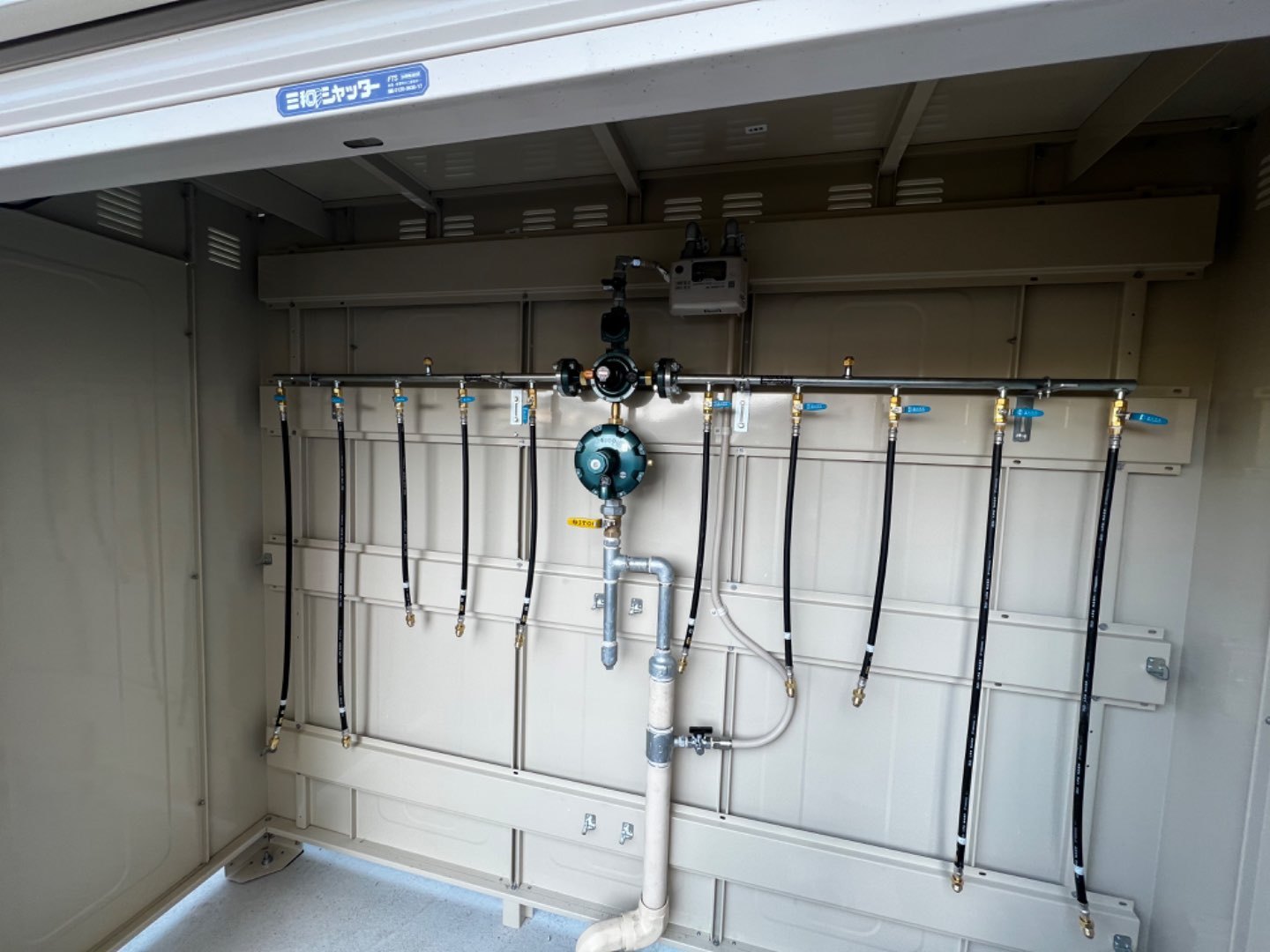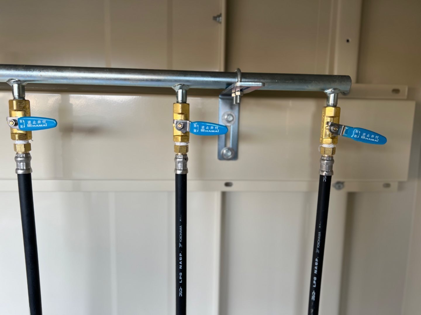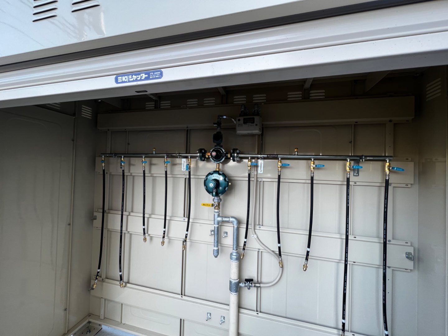 5.ボンベ庫新規設置工事。集合装置設置・付帯配管工事。