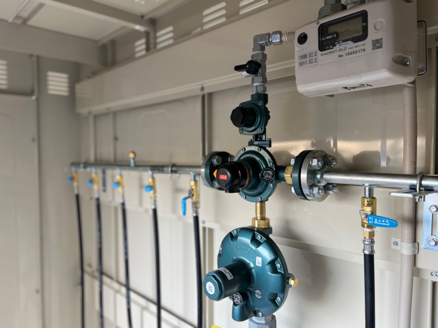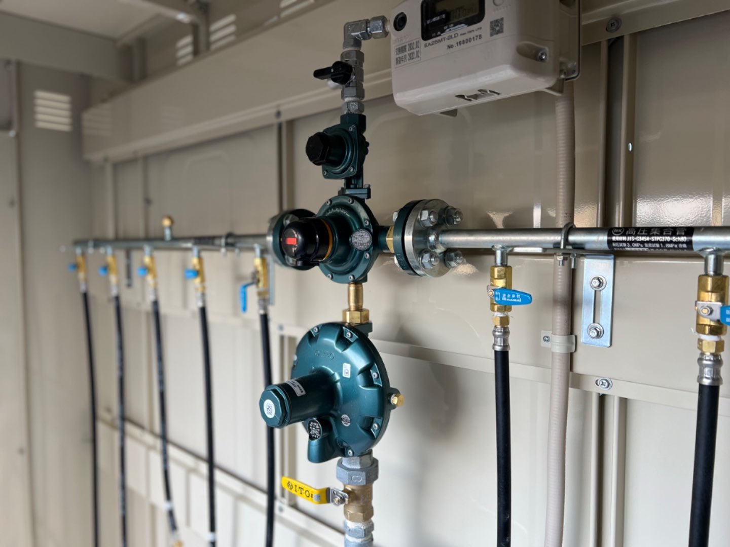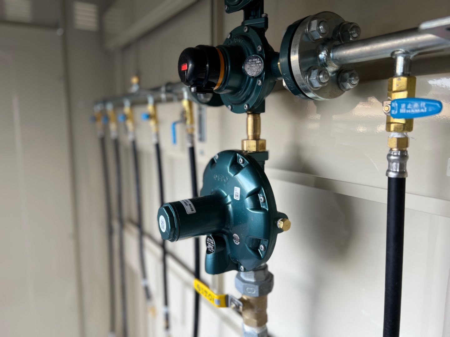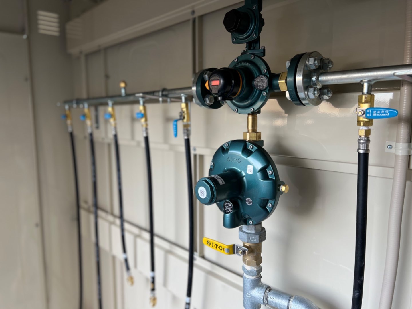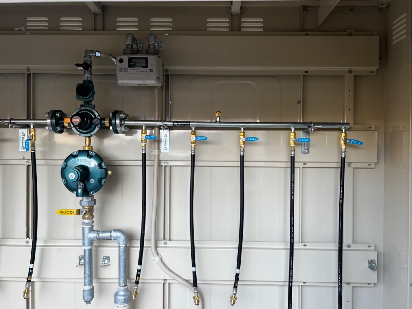 5.ボンベ庫新規設置工事。集合装置設置・付帯配管工事。