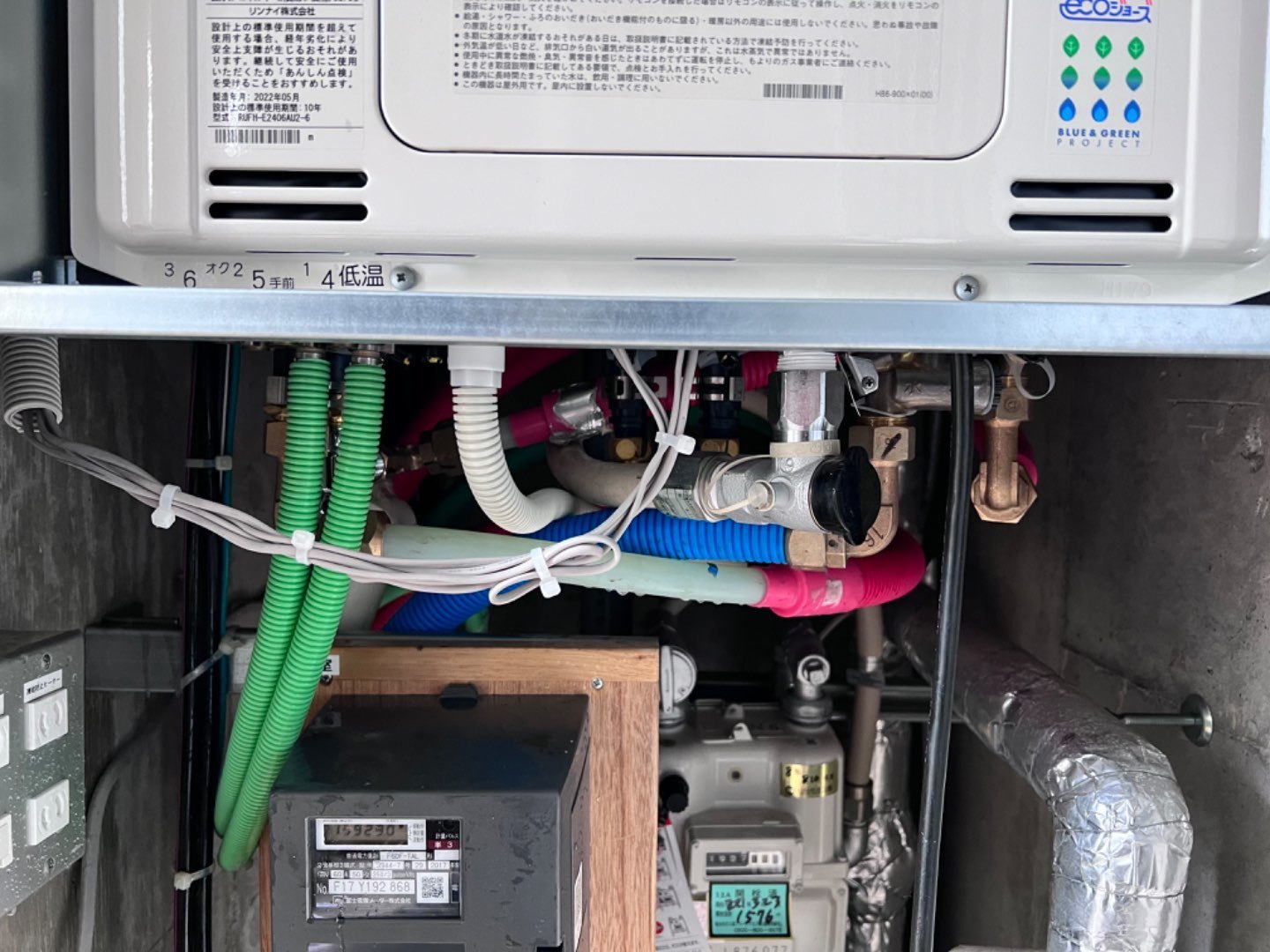 宮城県仙台市泉区 大型マンション一般お客様 リンナイ 24号扉内上方排気ガス給湯暖房熱源機交換工事