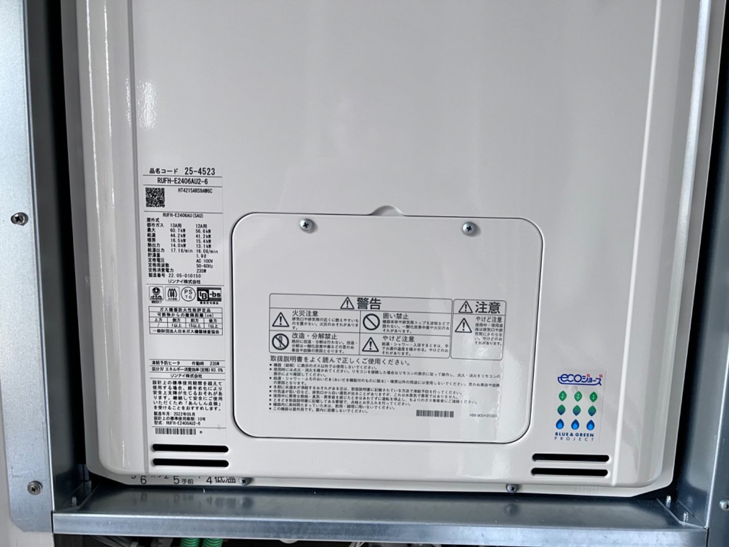 eco 24号扉内上方排気ガス給湯暖房熱源機