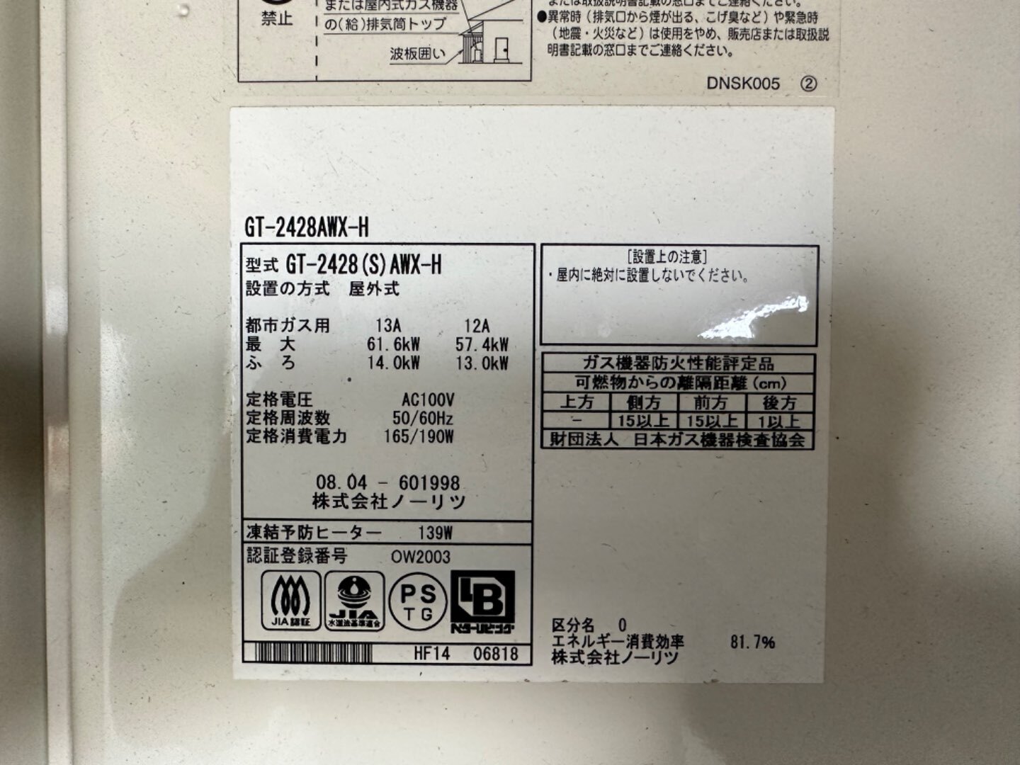 宮城県仙台市宮城野区 マンション一般お客様 ノーリツ製ガス給湯器交換工事