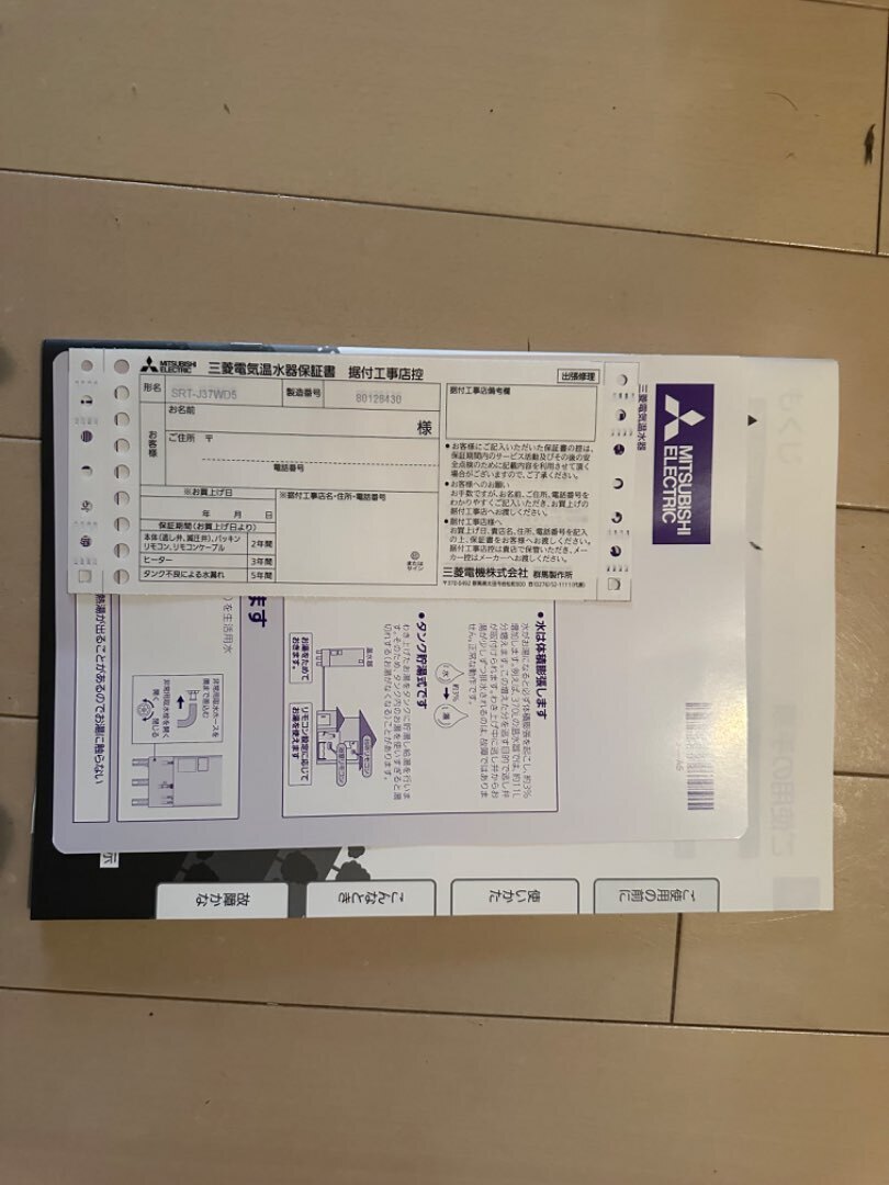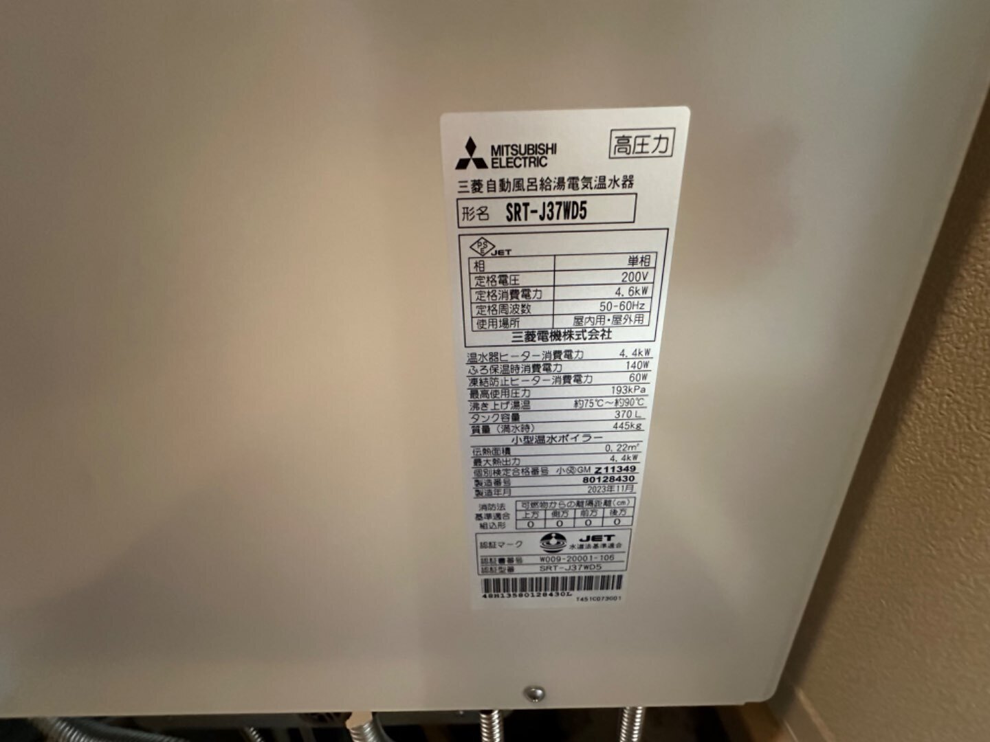 宮城県仙台市青葉区 マンションお客様 三菱電機電気温水器取付工事