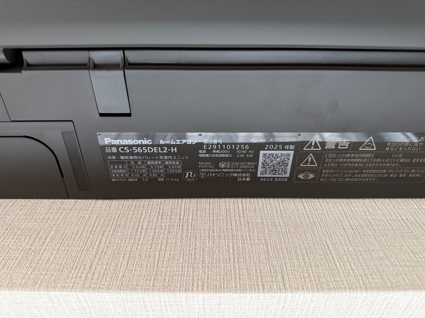設置機種: CS-225DEL-H(nanoeX搭載モデル)